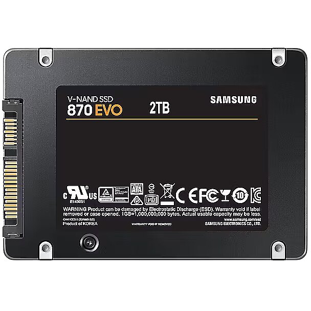 Description - SAMSUNG 870 EVO 2TB 2.5-inch SATA III Client SSD for Business The perfect choice for creators, IT pros and everyday business users, the latest 870 EVO SSD provides indisputable performance, reliability, and compatibility advantages. It features a 5-year limited warranty and low lag 6th-generation V-NAND and steady performance when multi-tasking. Add 870 EVO to laptops, network storage devices, video systems and more for extra storage and reliability. + Excellent performance with maximized write speeds + More compatible than ever with storage devices, video systems and PCs + Upgrade with ease—just plugin and restart and manage with Samsung Magician software + You can trust the world's number one flash memory brand with your data
