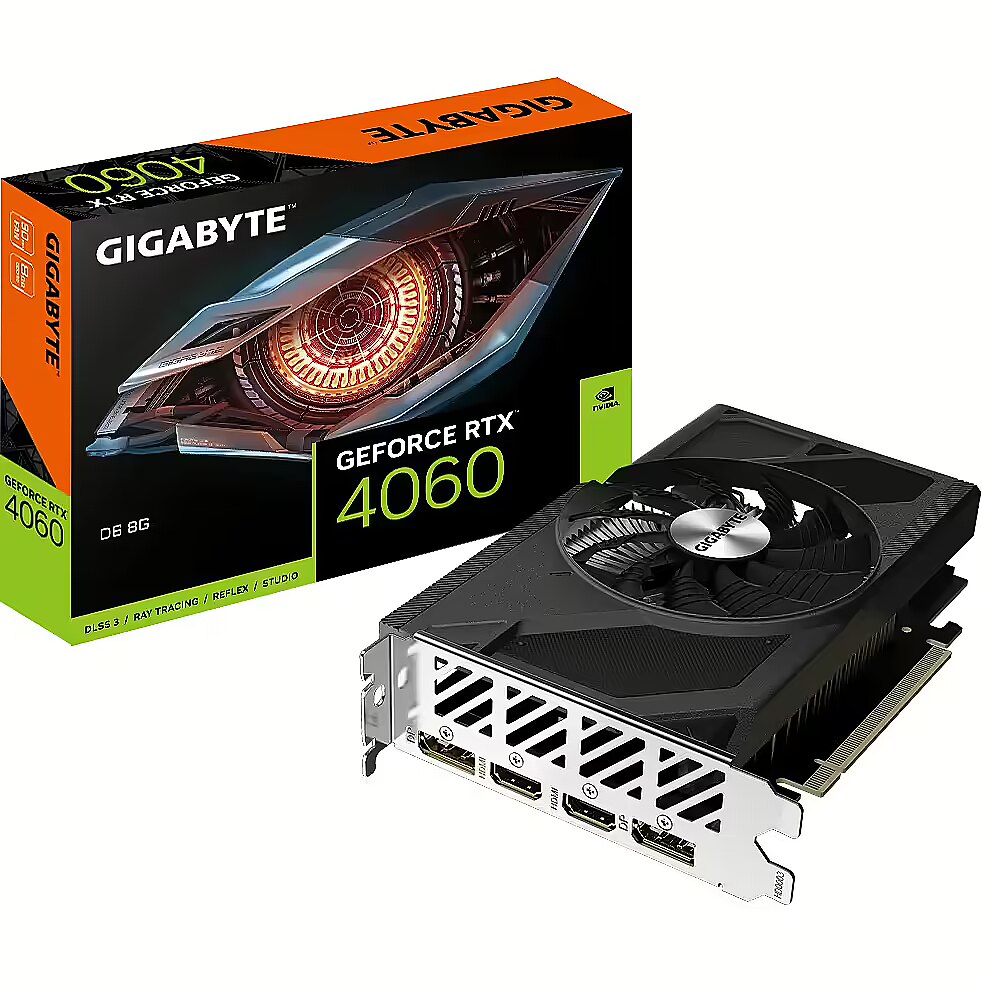 ShortSummaryDescription - GIGABYTE GeForce RTX 4060 D6, GeForce RTX 4060, 8 GB, GDDR6, 128 bit, 7680 x 4320 pixels, PCI Express 4.0