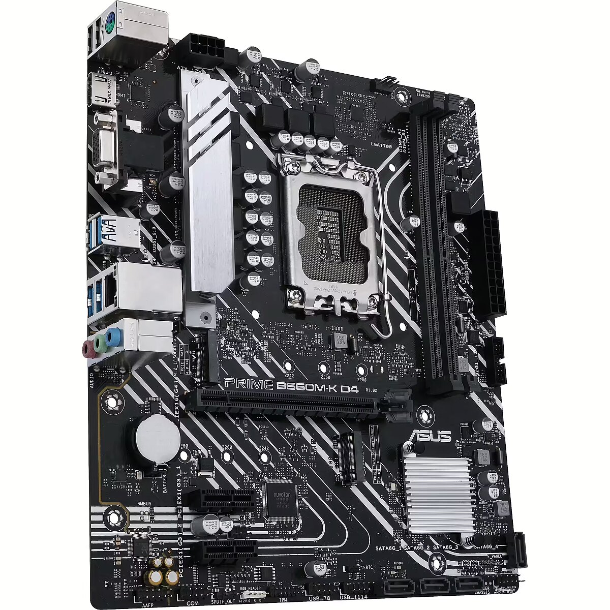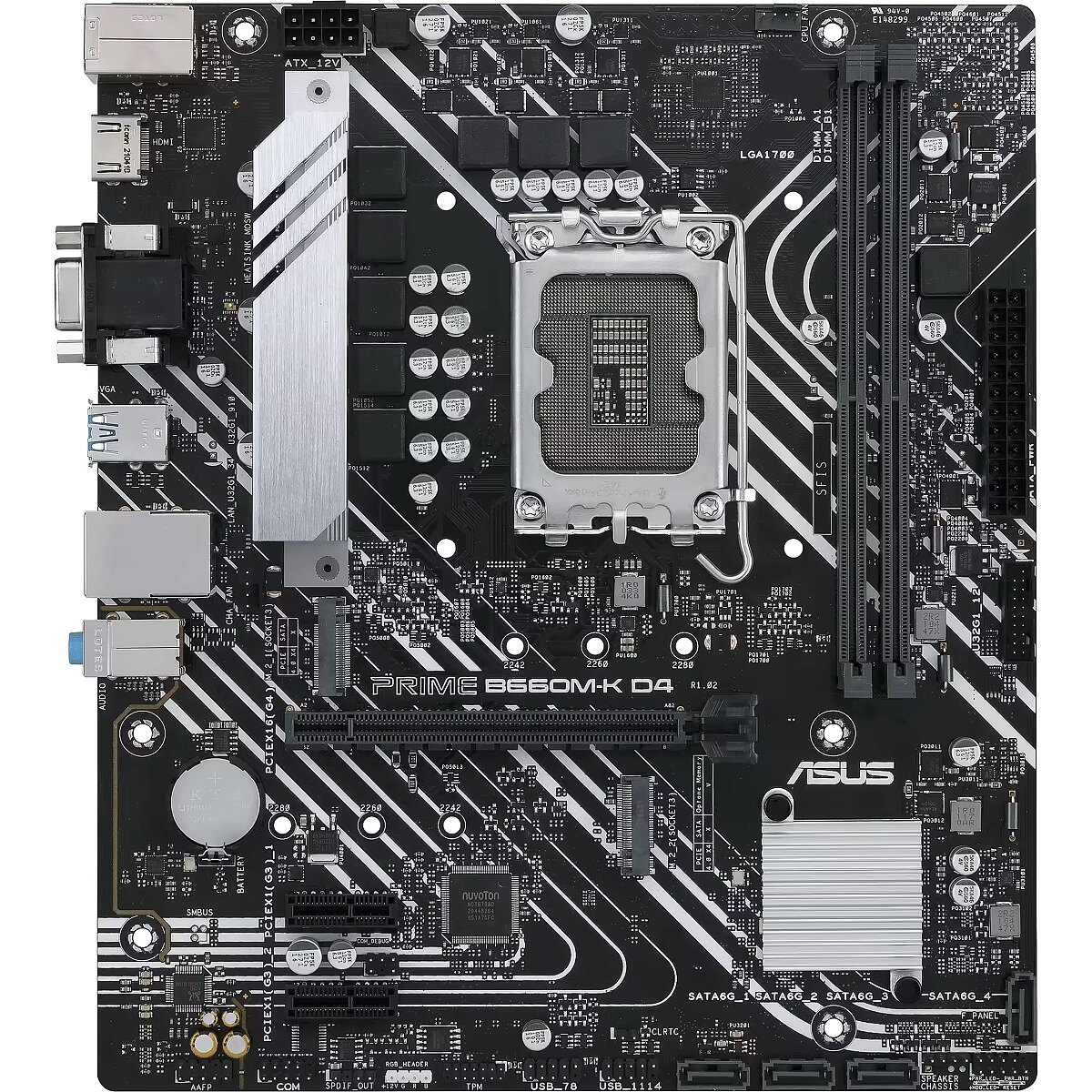 ShortSummaryDescription - ASUS PRIME B660M-K D4, Intel, LGA 1700, Intel® Celeron®, Intel® Core™ i3, Intel® Core™ i5, Intel® Core™ i7, Intel® Core™ i9,..., LGA 1700, DDR4-SDRAM, 64 GB