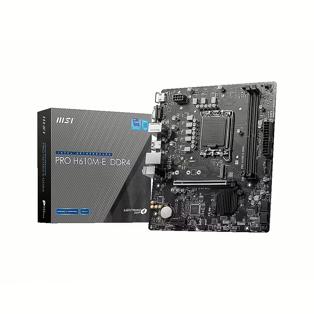 description_en - The MSI PRO H610M-E DDR4 is a micro-ATX form factor motherboard designed for Intel LGA 1700 socket processors, including 12th, 13th, and 14th Gen Intel® Core™, Pentium® Gold, and Celeron® processors. This motherboard is ideal for building business and everyday PCs, offering stable functionality, high-quality components, and optimized performance.