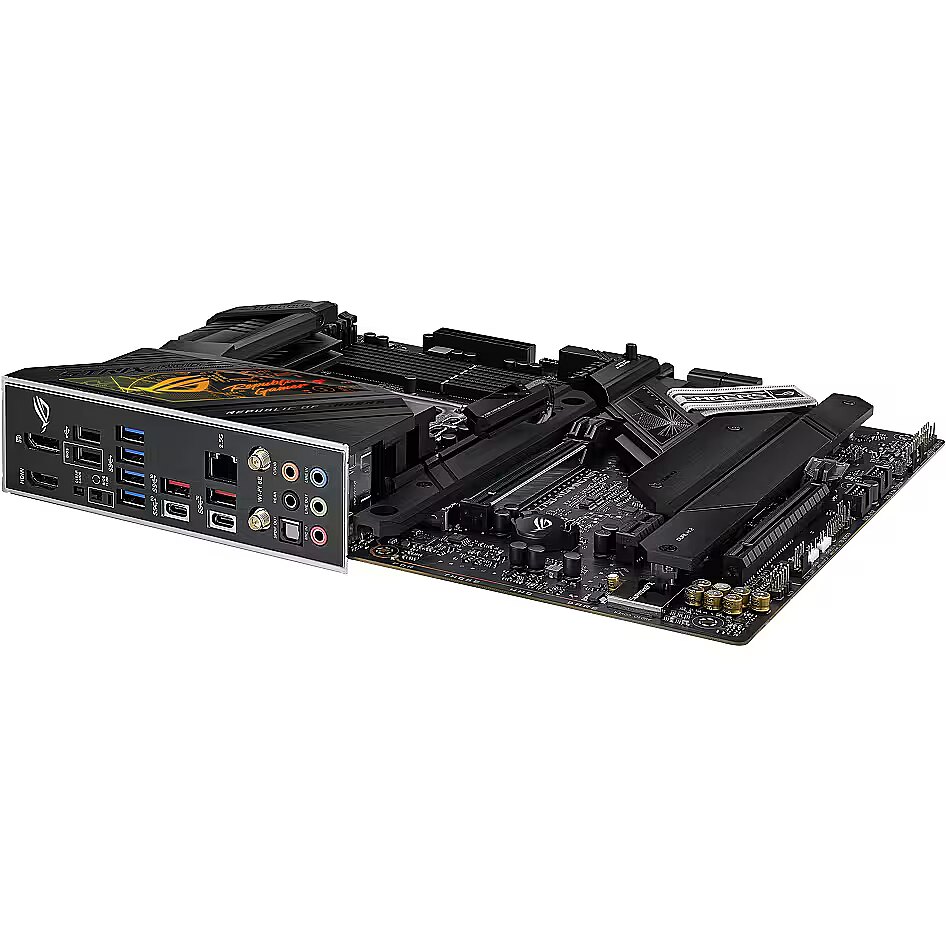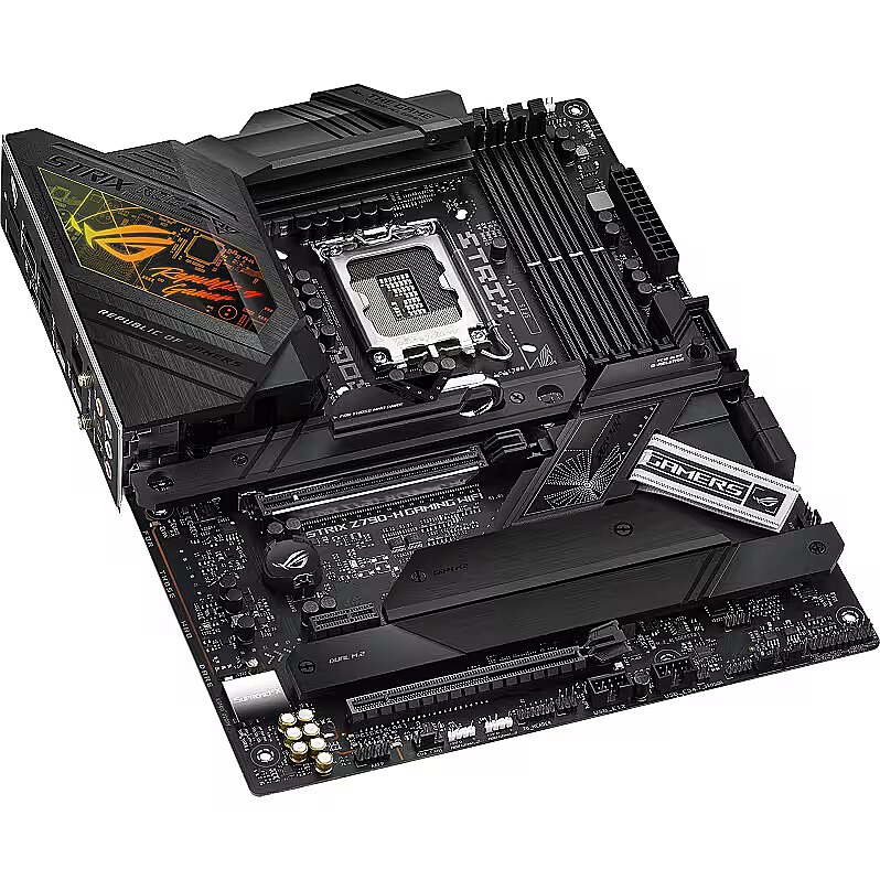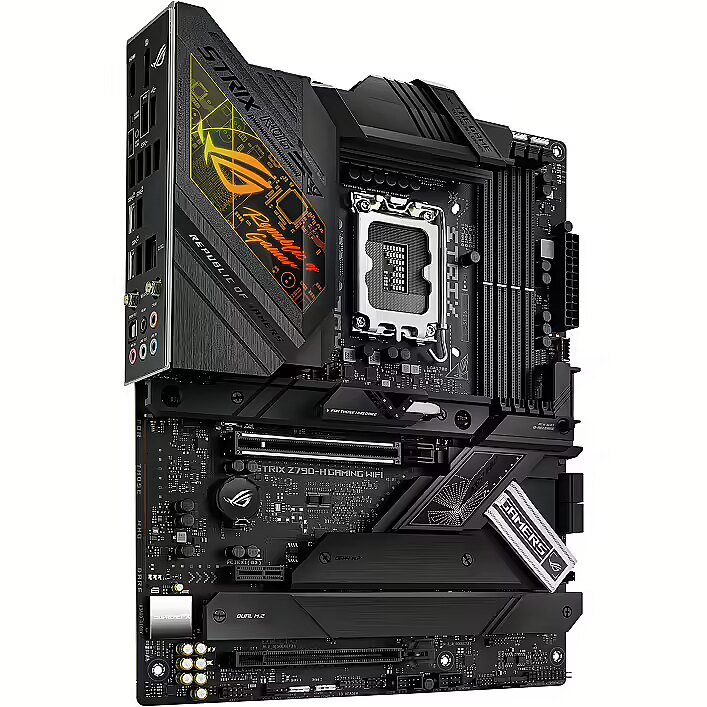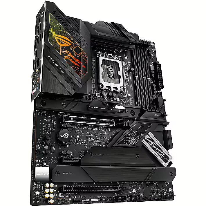Description - ROG STRIX Z790-H GAMING WIFI Strike stealthily with the powerfully potent ROG Strix Z790-H. Thick black heatsinks keep VRM temperatures under wraps, allowing Intel® 13th Gen processors room for higher boosts. Four M.2 slots are similarly outfitted, and the top slot comes with a combo sink to sneak in extra cooling. PCIe 5.0 support lies in wait for next-gen graphics cards, and cutting-edge WiFi 6E and USB 3.2 Gen 2x2 fully flesh out connectivity.