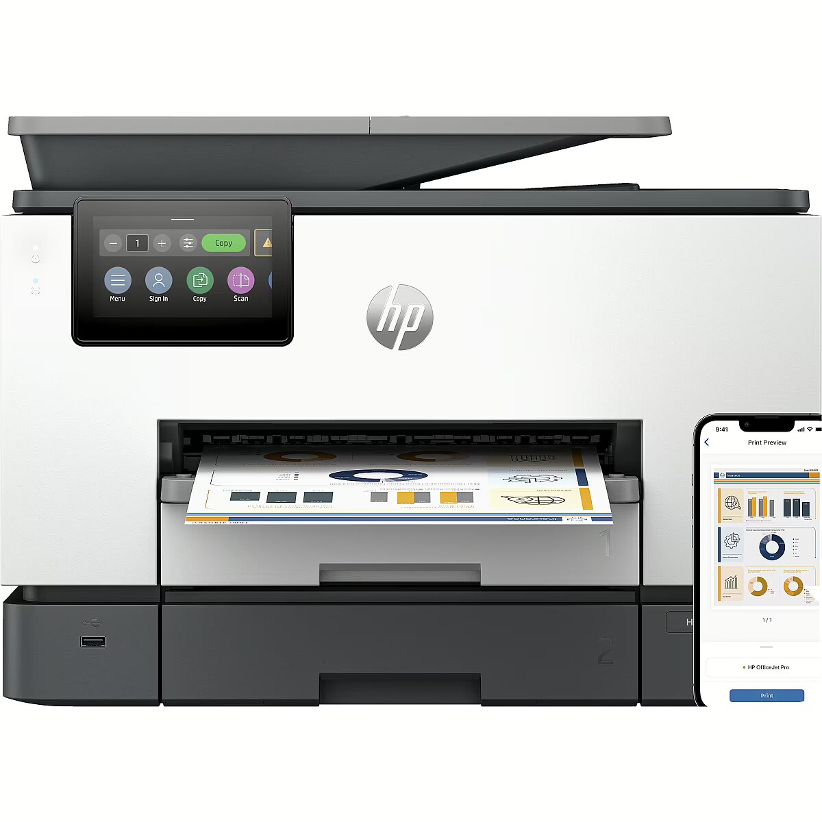 Description - HP OfficeJet Pro 9130b All-in-One (4U561B) Manage your printing like a pro. A professional color inkjet printer for distributed offices/hybrid workers from the world's #1 printer company, combined with our best technology to help you manage it all. This streamlines work on any network with additional performance-enhancing features. Implement. Integrate. Customize with ease. Easily deploy, integrate and configure a fleet of printers across multiple locations. Our best technology to help you manage it all Stay connected with our most reliable dual-band, self-healing Wi-Fi network that automatically reconnects. Empower your business with a powerful productivity tool Always ready for large volumes - buy an HP OfficeJet Pro printer equipped with two 250-page trays. Innovating with 40% recycled plastic Choose printers made from at least 40% recycled plastic.