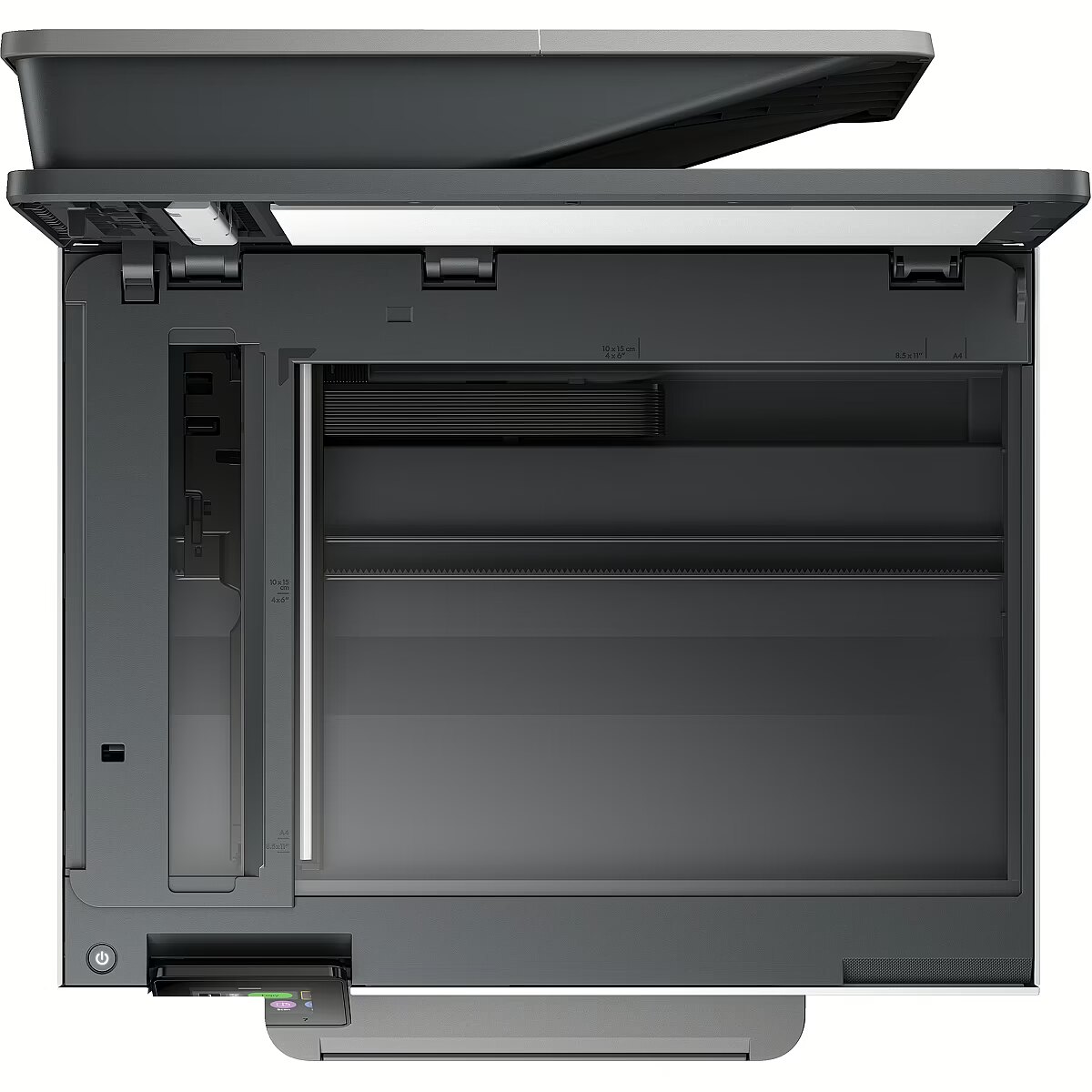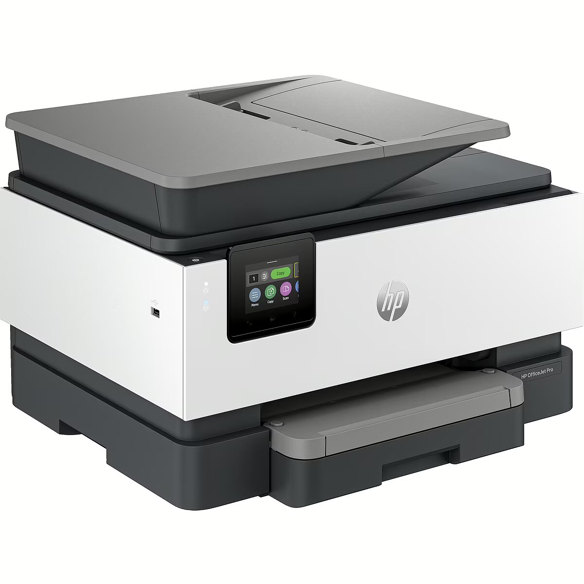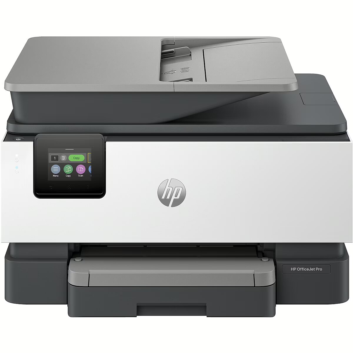 Technical_details - The HP OfficeJet Pro 9120e is an inkjet multifunction printer that is ideal for home offices or workgroups with up to 5 users. With its scanning, copying and fax functions, it offers a wide range of possible uses. The duplex function enables automatic two-sided printing, saving time and paper. The convenient operation via touchscreen on the front makes it particularly easy to use. Thanks to the integrated LAN, WLAN and WiFi direct printing, you can print from various devices such as smartphones or tablets. The HP OfficeJet Pro 9120e is an ideal choice for productive work. This device comes with a 3-month HP Instant Ink ink subscription via HP+. Item number: 100040326 Warning: Use of HP+ requires an HP Smart account, an Internet connection and the exclusive use of original HP inks for the lifetime of the printer. Type multifunction printer color gray EAN 0196786895944 Manufacturer no. 403X8B#629 OfficeJet series Connections 2x RJ-11, 1x RJ-45, 1x USB-B 2.0, 1x USB host Communication Bluetooth, WiFi direct printing, WLAN Formats A4, A5, A6, B5, C5, C6, DL (DIN long), 10x15 cm, 13x18 cm Media Glossy paper, plain paper Emulations PCL 3 GUI Display 6.86 cm (2.7") touchscreen Consumable inks: HP 937 (4S6W5N), black (up to 1250 pages), HP 937 cyan (4S6W2N), HP 937 magenta (4S6W3N), HP 937 yellow (4S6W4N, up to 800 pages each), HP 937e (4S6W9N) EvoMore black (up to 2500 pages), HP 937e EvoMore cyan (4S6W6N), HP 937e EvoMore magenta (4S6W7N), HP 937e EvoMore yellow (4S6W8N, up to 1650 pages each) Ink/toner cartridge storage Compatible Linux, MacOS X, Windows 10, Windows 11, Windows 2016 Server, Windows 2019 Server Memory occupies 512 MB Energy consumption standby 5.06 watts Trays Paper Tray 1: 250 sheets Printer print area 210 x 297 mm Fax memory up to 100 pages Copier maximum copies 99 Scanner scanning area 215.6 x 297 mm Power supply Mains voltage AC 100 - 240 V (50Hz/60Hz) Feature Booklet Printing, Duplex Unit (Printing), Apple AirPrint, Mopria Certified, Direct Printing from USB, 1.2GHz Processor. Features: Automatic document feeder, touch screen. Adjustable media sizes: 76.2 x 127 to 215.9 x 355.6 mm. Supported media weights: 60 to 105 g/m2 (plain paper), 220 to 280 g/m2 (photo paper). Copy Features: Number of Copies, 2-Sided, Lighter/Darker, HP Copy Fix, ID Copy, Resize, Quality, Paper Size, Paper Type, Collate, Margin Shift, Crop, Copy Preview. Scan output formats: JPG, BMP, TIFF, PDF, PNG, RTF, TXT. Possible scan destinations: Dropbox, Google Drive, OneDrive, email recipient, USB stick. Note Includes 3 months of HP Instant Ink for free. Accessories available Setup ink cartridges for up to 800 pages black and up to 420 pages color, power cable, setup instructions Dimensions device width: 43.93 cm x height: 27.8 cm x depth/length: 34.25 cm Weight 9.3kg