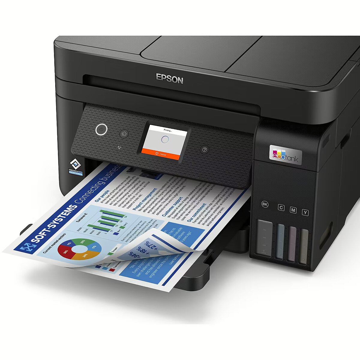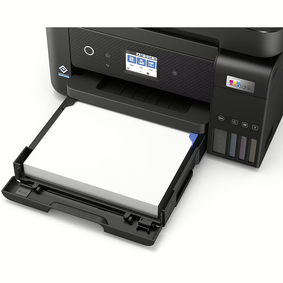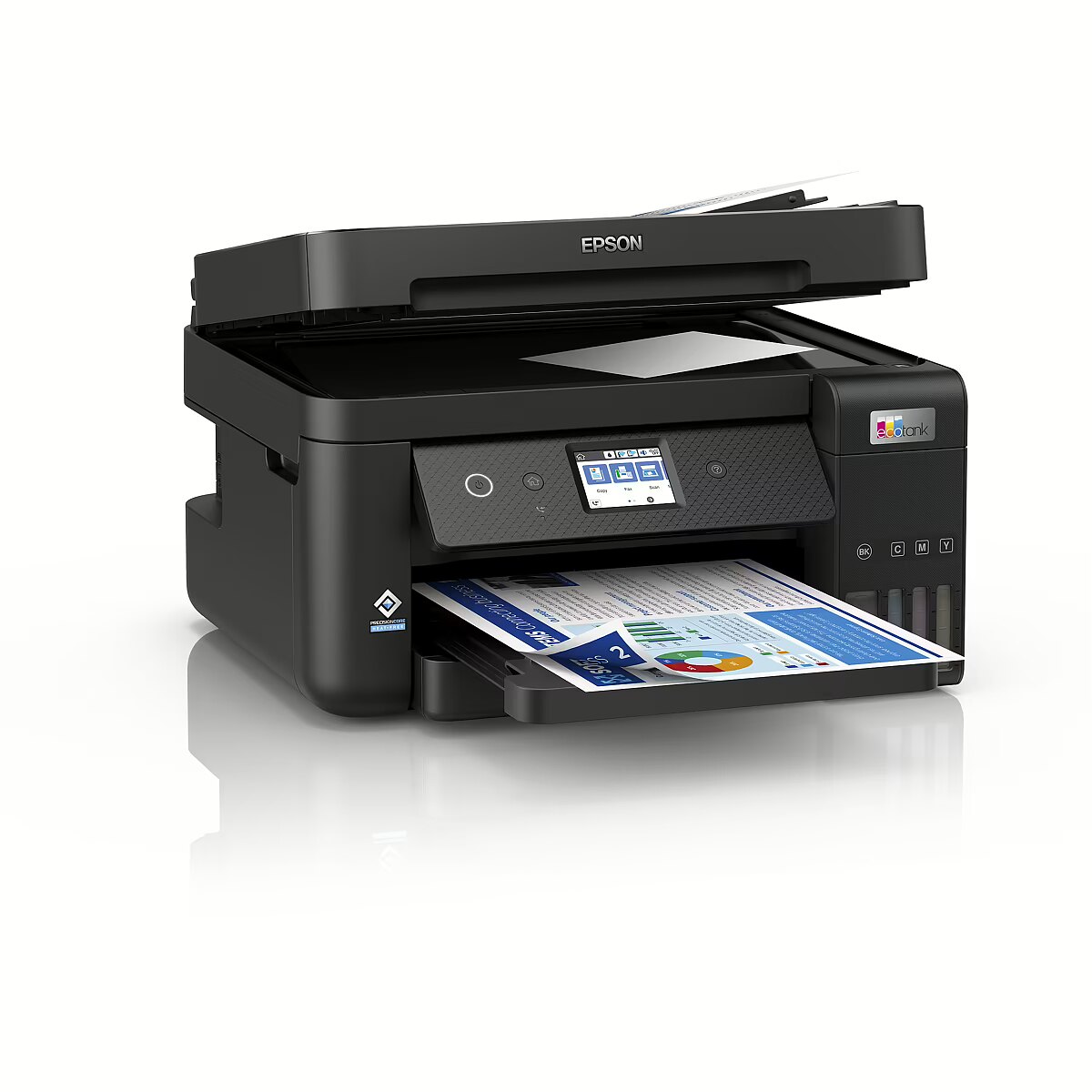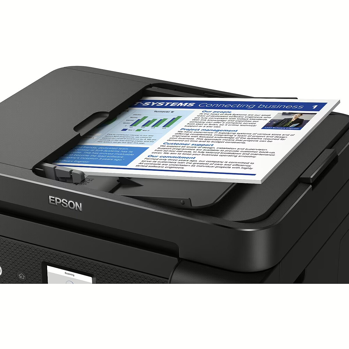 LongDesc - Say goodbye to cartridgesEnjoy high-speed, business quality printing at an ultra-low cost with this multifunction inkjet with fax and ADF, perfect for home officesSave up to 90% on printing costs1 with Epson’s cartridge-free EcoTank printers. Supplied with high yield ink bottles, the integrated ink tanks are easy to fill thanks to the specially engineered ink bottles. With no cartridges to replace, flexible connectivity features, fax and ADF, this is the perfect printer for anyone looking for high-quality prints at an incredibly low cost per page.Say goodbye to cartridgesEcoTank provides hassle-free printing for homes and small offices - the ultra-high capacity ink tanks allow mess-free refills and the key-lock bottles are designed so only the correct colour can be inserted.Keep on savingThis economical printer saves you up to 90% on printing costs1 and comes with an extra black ink bottle for up to 3 years' worth of ink included in the box2. One set of ink bottles delivers up to 7,500 pages in black and 6,000 in colour3, equivalent of up to 72 cartridges worth of ink!Epson Smart Panel appThis app enables you to control your printer from your smart device4. You can print, copy and scan documents and photos, set up, monitor and troubleshoot your printer, all from your phone or tablet.Packed with featuresFeaturing a 6.1cm colour touchscreen, automatic double-sided printing and 30-page document feeder, fax, 250-page front paper tray and print speeds of up to 15.5 pages per minute5, you can speed through a variety of tasks with ease.Modern flexibilityFeaturing a compact design and full Wi-Fi, Wi-Fi Direct and Ethernet connectivity, you can easily integrate this printer with your existing home or office set-up and print from mobiles, tablets and laptops4.Heat-Free TechnologyWith PrecisionCore Heat-Free Technology you can enjoy reduced energy consumption and less need for replacement parts. The printhead also comes pre-installed so setting up your printer is hassle-free.