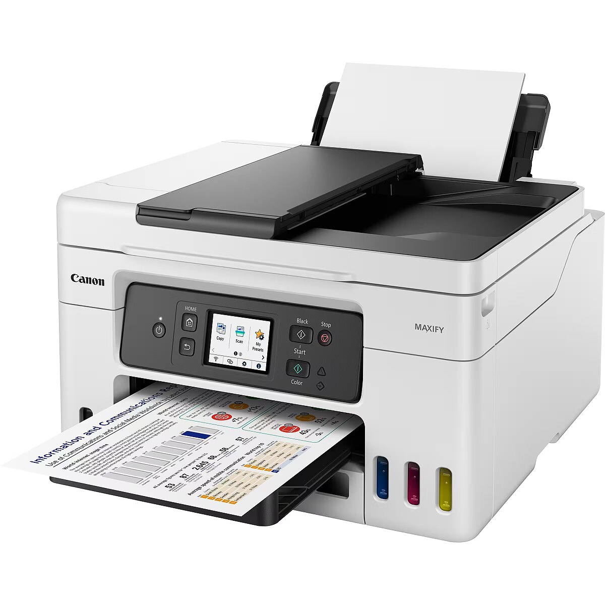 LongDesc - Print large volumes of high-quality business documents while making huge savings on CPP and TCO with this refillable and easy to use 4-in-1 MegaTank-equipped MAXIFY GX printer with ADF, Wi-Fi and Ethernet.Brilliant productivity, best-in-class CPP and TCOCost per page (CPP) is the amount of money that it takes to print a single page. This is determined by dividing the cost of the ink by the page yield.The total cost of ownership (TCO) is a calculation of what a printer would cost you based on the initial purchase cost of hardware plus the costs of ink over a fixed period.Low running costs, brilliant productivityWith a full set of ink bottles producing up to 14,000 prints, this high-performance, high-volume MegaTank printer delivers huge savings on the total cost of ownership and cost per page. That’s a smart investment for any home office.Compatible Apps and SoftwarePrint documents, photos and more direct from your smart device with the free Canon PRINT app, or quickly design and print visually striking posters and flyers with PosterArtist. Use PIXMA Cloud Link to send scans to or print from popular cloud services including Dropbox, Google Drive and OneDrive.Canon Easy-PhotoPrint Editor turns your favourite photos (from your device or cloud storage) into stylish, personalised gifts such as cards and calendars.The simple to use Easy-Layout Editor allows you to freely arrange the layout of various documents before printing them. Ideal for printing images, posters, web pages and more.