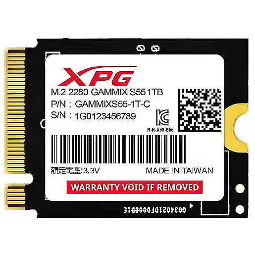 Description - XPG GAMMIX S55 PCIe Gen4x4 M.2 2230 SSD GAMMIX S55 is equipped with a PCIe 4.0 interface providing sequential read and write speeds of up to 5000/3800 MB per second and memory capacity of up to 1 TB. Adopting the M.2 2230 form factor, GAMMIX S55 provides high-end storage for small systems, mobile devices and supports the latest Intel and AMD platforms.