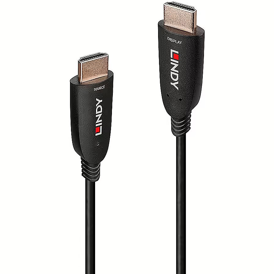 LongDesc - Lindy's range of Fibre Optic Hybrid cables are a professional solution for extending HDMI signals over longer distances. Combining the flexibility and high EMI and RFI resistance of fibre optic cable with standard copper cabling, these hybrid cables are ideal for use in critical AV setups, commercial displays or high-performance residential installations.The internal technology provides uncompressed amplification of the HDMI signal, allowing long distance extension of HDMI 8K content that is simply not possible with passive cables.With 48Gbps bandwidth, these cables support HDMI 2.1 resolutions up to 3840x2160@120Hz, and 7680x4320 / 10240x4320@60Hz. Content can be viewed with incredible detail and clarity at higher refresh rates for optimum viewing of movies, graphics or imagery.As well as static HDR, HDMI hybrid cables also brings further support for dynamic HDR formats such as Dolby Vision and HDR10+. This provides every moment of content, whether scene by scene or even frame by frame, with a much wider colour gamut based on the BT.2020 colour space, higher peak brightness and deep blacks for optimum contrasts as well as greater depth of colour. This is essential for the transmission of VOD content including TV shows and movies, as well as VR and video games, ideal in eSports, retail setups and superior home cinema installations.The advance of audio control and formats is also brought forward with HDMI. eARC support further simplifies connectivity with compatible sound systems, amplifiers and soundbars, passing lossless audio from the source to the connected output over the cable. eARC also supports high bitrate audio with a sample rate of up to 192kHz and up to 32 channels. This allows for the use of object based audio formats such as Dolby Atmos and DTS:X, truly surrounding the viewer in immersive sound to enhance and compliment the video content. This is great for multi-dimension residential setups, cinema installations, or inspiring event distribution.Whether used with residential gaming setups or premium eSports events, these AOC cables also provide extensive features for enhancing the gaming experience, whilst also benefitting fast moving sports and entertainment content. VRR (Variable Refresh rate) reduces and eliminates lag, judder and frame tearing for a much fluid gameplay experience whether it's for quick reactions in an action game or scoring a last minute winner in sports games. ALLM (Auto Low Latency Mode) further helps this by enabling the ideal latency setting for smooth transitions of content. QFT (Quick Frame Transport) also assists with ensuring low latency, by transporting frames at a higher rate which can prove essential with real time VR gameplay. These features also benefit various other industries such as sports bar distribution, medical facilities, experiential displays or news broadcasting.Please Note: eARC/ARC and CEC functions are not supported for lenghts over 20m.We can make cables up to 200m on request, contact us for quotations.