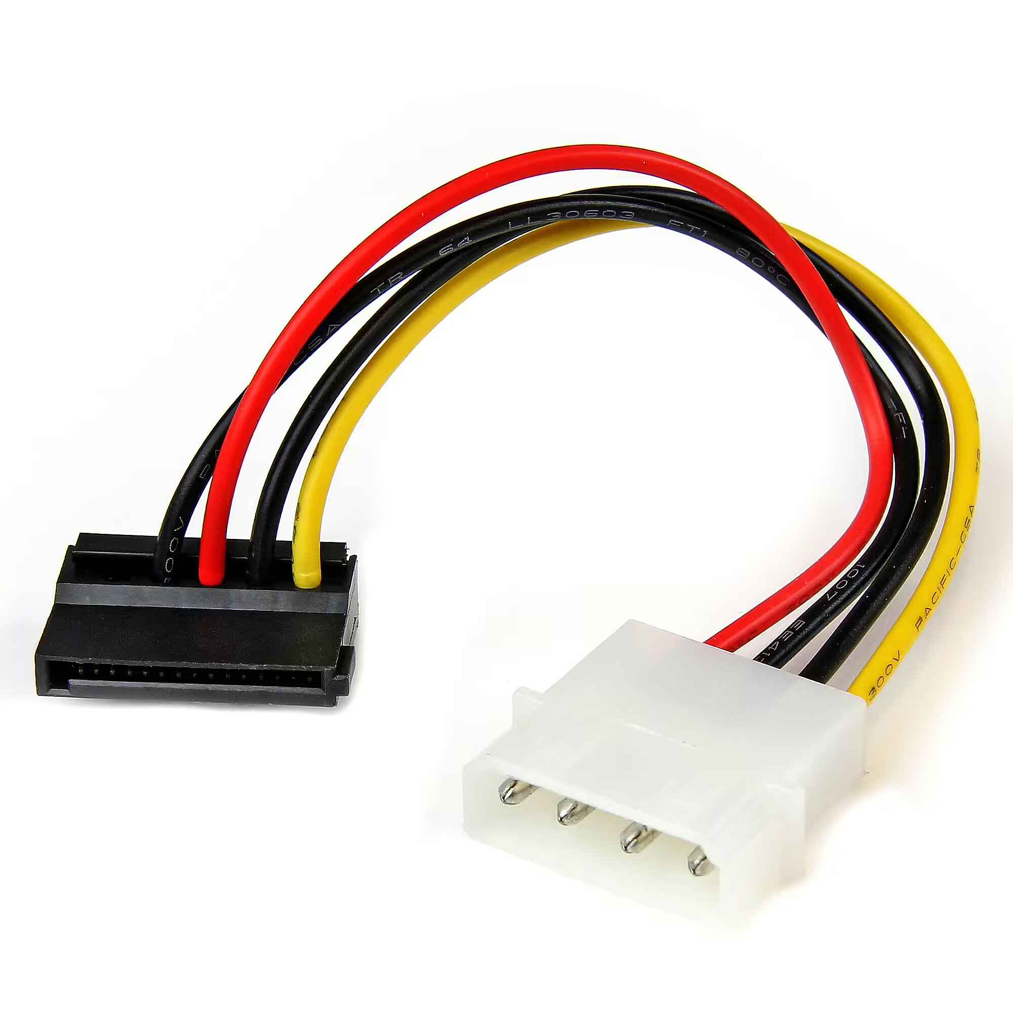 LongDesc - Power a SATA hard drive from a conventional LP4 power supply connectionThe SATAPOWADPL Molex to 90-degree SATA power adapter features one 4-Pin Molex (LP4) male connector and a left angle, 90-degree SATA power connector (female), which enables you to power a Serial ATA hard drive from a conventional LP4 connection and eliminates the need to upgrade the computer power supply for compatibility with the SATA hard drive.The 90-degree (left angle) SATA power connector makes it easier to connect a SATA drive that's installed in hard to reach areas or tight spaces, avoiding the strain on both the connector and cable.This LP4 to SATA adapter is backed by StarTech.com's Lifetime Warranty.The StarTech.com Advantage- Compatible with both 2.5” and 3.5” Serial ATA Hard Drives and allows the use of newer SATA hard drives with older power supplies, which eliminates power supply upgrade costs- Left-angled, 90-degree SATA power connector allows this cable to be used where normal straight connector cables cannot, accommodating tighter space limitations while minimizing strain on the cable and also the drive's SATA connector- Backed by a StarTech.com lifetime warranty