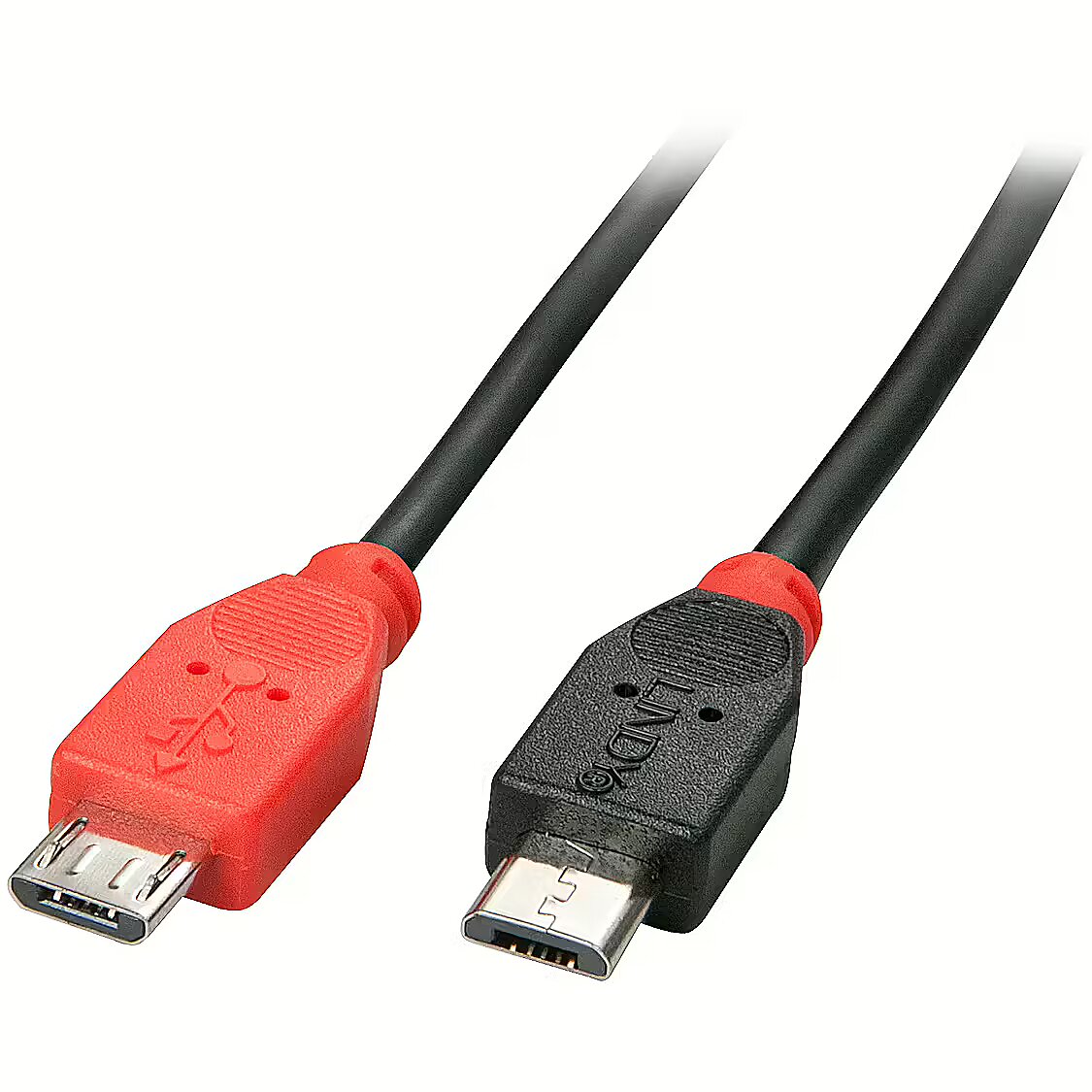 LongDesc - The Lindy USB Type Micro-B to Micro-B OTG cable enables a direct connection between two Micro-USB devices, with one device being the host and the other being the peripheral.The connectors feature different colours for better differentiation. The red marked connector is the OTG host and should therefore be connected to the device which should serve as a host. Please note that the cable does only work in one direction.The cable is compatible with many devices featuring a USB Type Micro-B port, such as smartphones, cameras, E-Bike computers, drones. It can e.g. be used to connect a smartphone to an E-Bike computer to charge or to transfer images from a camera directly to the smartphone.Lindy USB Type Micro-B to Micro-B OTG Cables are available in the following lengths: 0.5m, 1m and 2m.