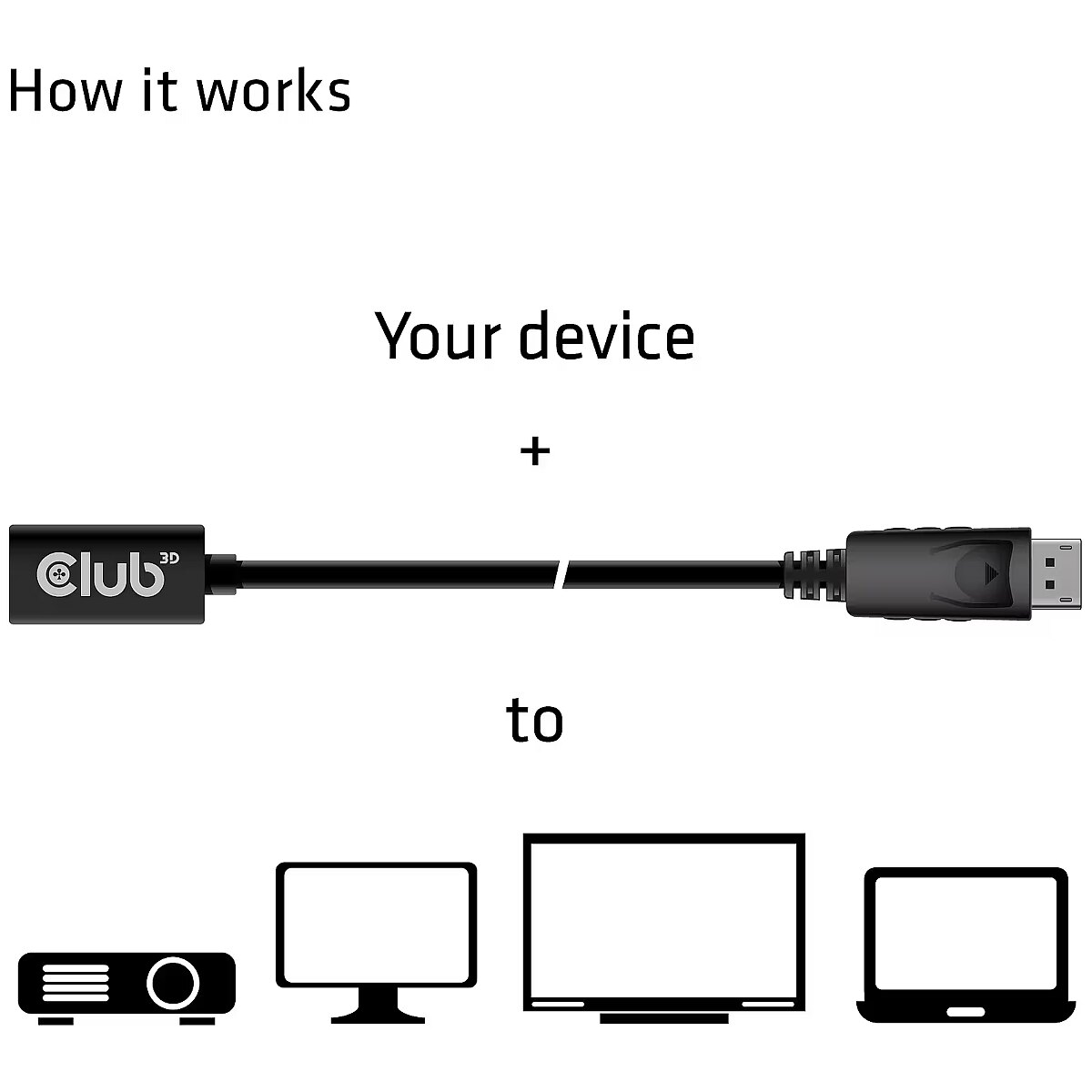 ShortSummaryDescription - CLUB3D Mini DisplayPort 1.4 to DisplayPort Extension Cable 8K60Hz DSC 1.2 HBR3 HDR Bidirectional F/M 1m/3.28ft, 1 m, Mini DisplayPort, DisplayPort, Female, Male, 7680 x 4320 pixels