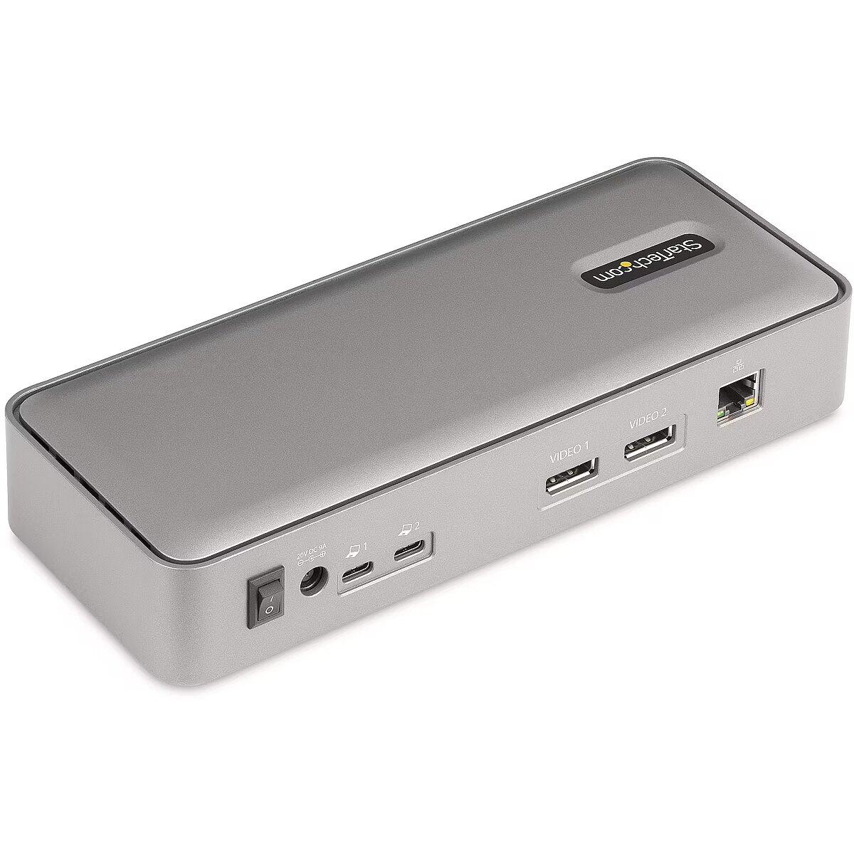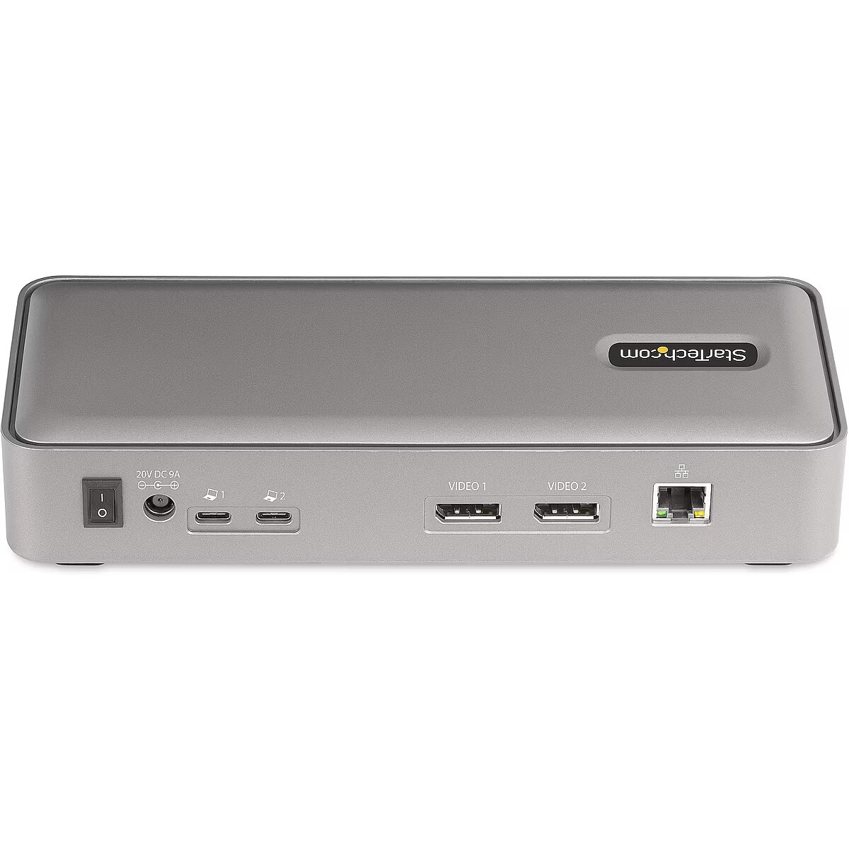 LongSummaryDescription - StarTech.com Dual-Laptop USB-C KVM Docking Station, Dual Monitor 4K 60Hz DisplayPort Dock, 5-Port USB Hub, GbE, 90W/45W Power Delivery to Two Laptops, Windows/Mac, 2-Host KVM Dock - TAA. Keyboard port type: USB, Mouse port type: USB, Video port type: DisplayPort. Cabling technology: 10/100/1000Base-T(X), Networking standards: IEEE 802.3, IEEE 802.3ab, IEEE 802.3u. HD type: 4K Ultra HD, Maximum resolution: 3840 x 2160 pixels, Chipset: DisplayLink - DL6950, Genesys Logic - GL3590, Genesys Logic - GL9510, Parade - PS186, Realtek -.... Product colour: Silver, Housing material: Plastic, LED indicators: LAN, Power. Input voltage: 100 - 240 V, Input current: 2.4 A, Output voltage: 20 V