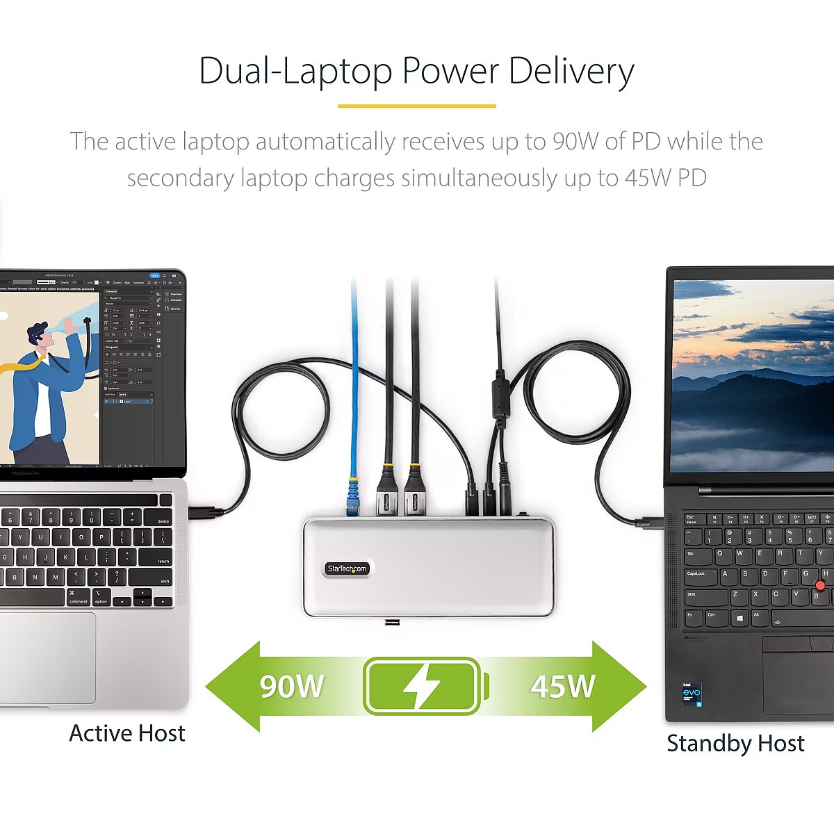 Title - StarTech.com Dual-Laptop USB-C KVM Docking Station, Dual Monitor 4K 60Hz DisplayPort Dock, 5-Port USB Hub, GbE, 90W/45W Power Delivery to Two Laptops, Windows/Mac, 2-Host KVM Dock - TAA
