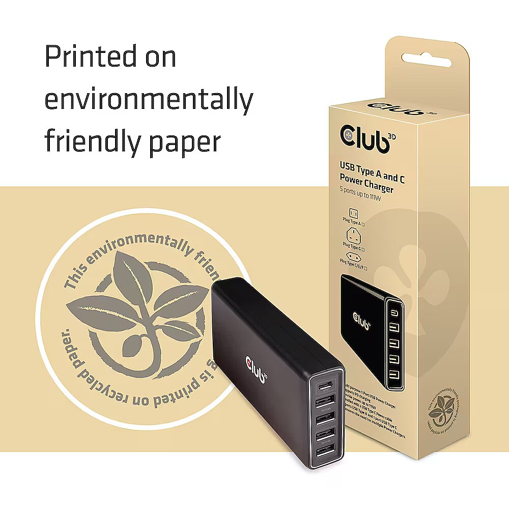 Club3D CLUB 3D USB Type A and C Power Charger 5 ports up to 111W