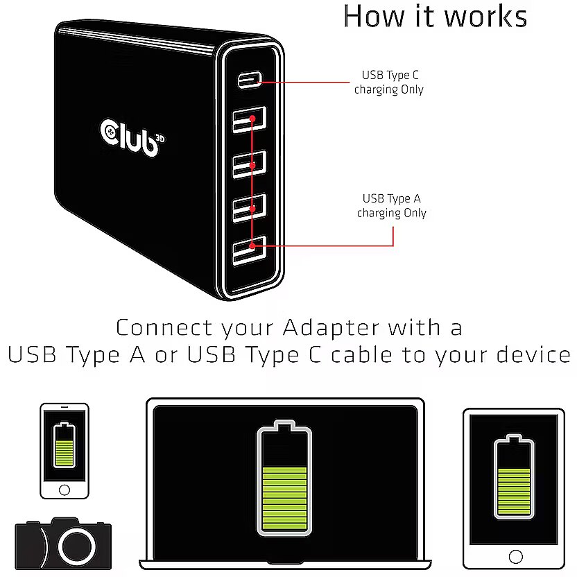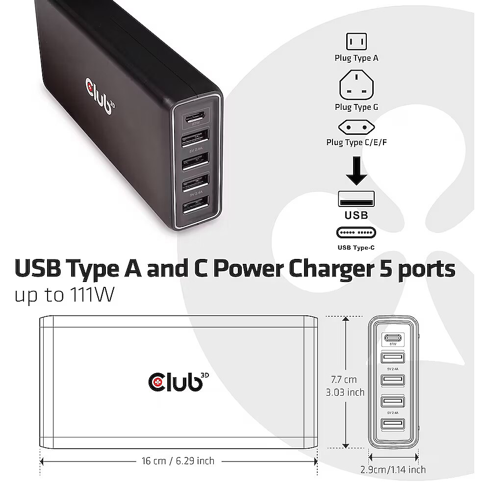 Vendor Homepage - www.club-3d.com/en/detail/2478/usb_type_a_and_c_power_charger_5_ports_up_to_111w/