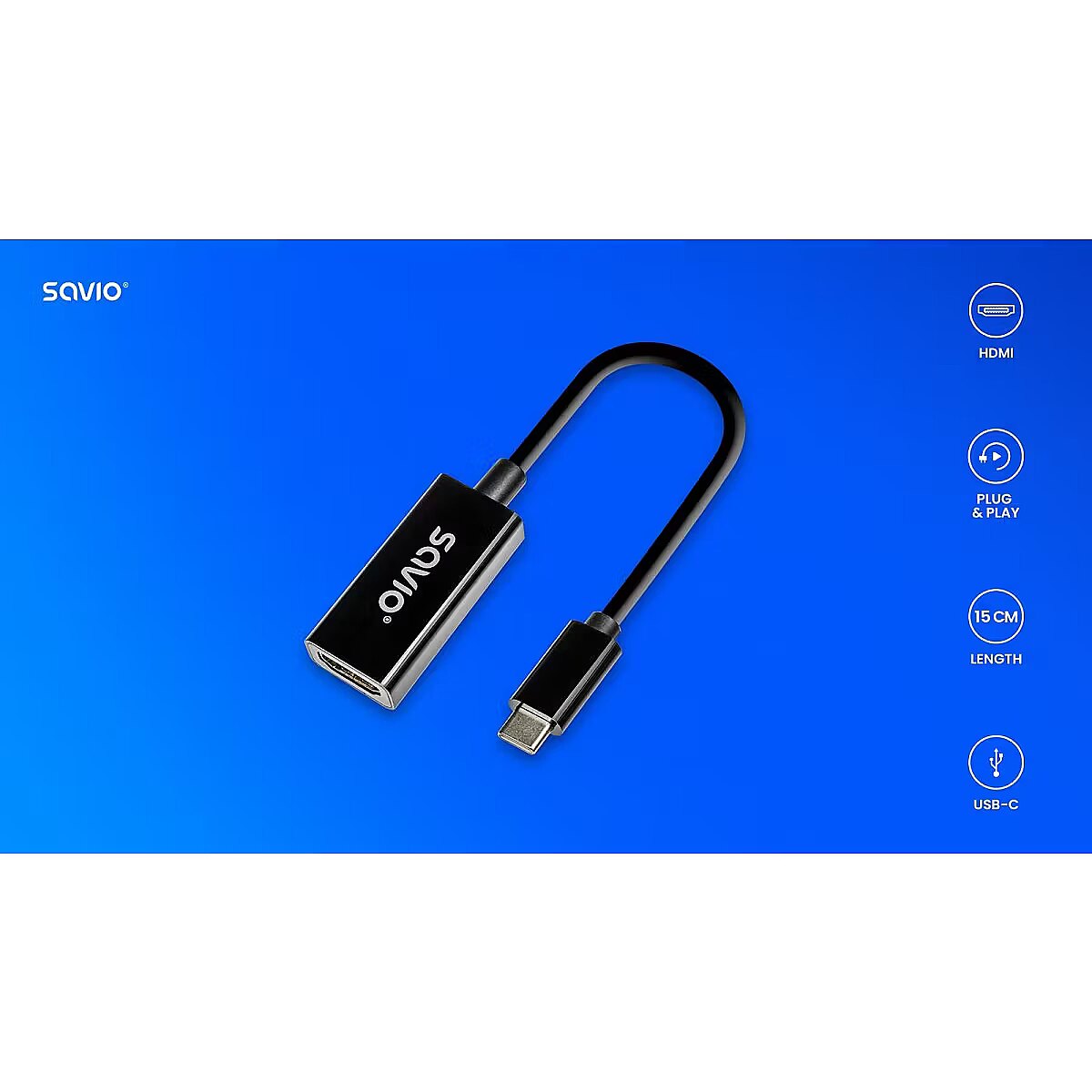 Description - SAVIO AK-79 USB-C HDMI adapter, 4K 30 Hz The SAVIO AK-79 is an adapter that connects the USB-C connector to the HDMI (F) port. This solution enables the transmission of video up to 4K resolution at 30Hz. The SAVIO HDMI adapter is an excellent choice. You will connect mobile devices, laptops or tablets to external monitors, projectors or TVs. Smooth and clear image Compatible with various electronic products from Apple, Samsung or Huawei Durable and high quality workmanship