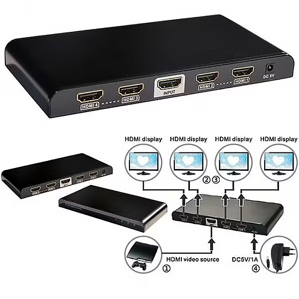 Special functions - Allows you to split audio / video signals of one HDMI source such as BlueRay, DVD, STB, PS3, etc .. for four LCD monitors, projectors, and HD screens simultaneously.