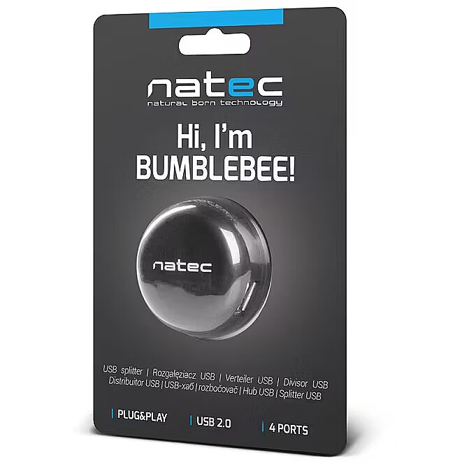 Description - The Natec Bumblebee USB Hub has 4 USB inputs. Now all of our devices can be connected to one HUB, thanks to which we save entries in the computer and we have free access to connected devices. Thanks to its shape, Bumblebee is perfect for any desk. The aesthetics of performance is at a very high level. Certainly it will look good on every desk. Natec Bumblebee has a retractable cord, becoming our faithful companion on the go. It does not take up much space in our bag, and when the cable is unrolled it is ready to be connected.