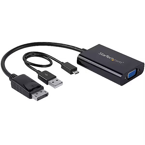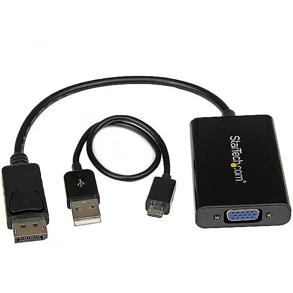 LongDesc - Connect your PC to a VGA display and a discrete 3.5mm audio outputThis unique DisplayPort to VGA adapter is equipped with a built-in audio port which lets you connect DisplayPort equipped devices, such as an HP EliteBook Folio 9470m laptop, to a VGA display or projector with audio.Share your presentations and videosBecause most boardrooms are set up differently, the length of cables available in each room varies. Not all laptops have the DisplayPort (DP) and audio ports positioned on the same side, which can become awkward when you’re trying to deliver your presentations. It can also mean that some ports may be just out of reach during a meeting.This convenient adapter positions your audio and video ports on the same side of your laptop, to ensure that all of the ports you need are accessible when you need them.Substitute for a damaged audio portIf the audio port on your mobile device is damaged or blocked by other connections, this convenient adapter guarantees that you’ll always have all of the ports you need for every presentation. By connecting audio to your laptop through the adapter, you can be prepared for any situation.In order to use the audio function of the adapter you need to power the adapter through a USB port on your laptop, or through a charge port on a USB grommet. Simply plug a Micro USB cable from the adapter into the USB port and audio will be available when you deliver your presentation.Create a clutter-free environmentThe adapter can also be used for connecting your laptop or desktop computer to your monitor and speakers. The adapter and connected cables can be placed nicely at the back of your monitor to create a tidy setup between all of your devices.Arrive prepared, wherever you goThis DisplayPort to VGA adapter is extremely portable with a lightweight, small-footprint design. It’s the perfect accessory to carry with your mobile devices, fitting easily into your laptop bag or carrying case. Its ultra-portable design makes the adapter ideal for BYOD (Bring Your Own Device) applications at the office.It also enables you to arrive prepared when you’re presenting to a potential client, teaching off-site, or traveling to a meet with a customer.The DP2VGAA is backed by a 3-year StarTech.com warranty and free lifetime technical support.The StarTech.com Advantage- Group your VGA and audio ports together, to ensure they’re all accessible when you need them- Substitute a damaged or blocked audio port by connecting your audio directly through the adapter- Provide crystal-clear picture quality with support for high-definition video resolutions up to 1920x1200 or 1080p