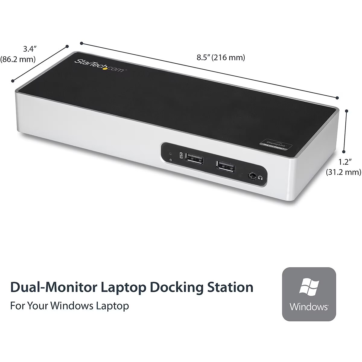 Title - StarTech.com USB 3.0 Docking Station - Dual Monitor Laptop Docking Station with HDMI & DVI/VGA Video - 6-port USB 3.1 Gen 1 5Gbps Hub, GbE, Audio - Universal Type-A Dock - Windows & Mac