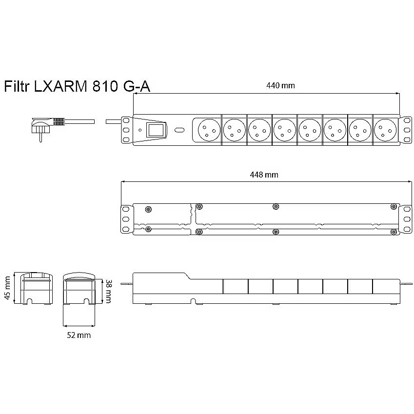 name - Listwa przeciwprzepięciowa LXARM 810, 3L, PDU, 5,0m, czarna