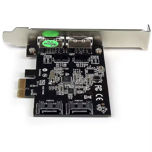 ShortSummaryDescription - StarTech.com 2 Port PCI Express SATA 6 Gbps eSATA Controller Card - Dual Port PCIe SATA III Card - 2 Int/2 Ext, PCIe, SATA, CE, FCC, REACH, ASMedia - ASM1061, 48 bit, 0 - 50 °C