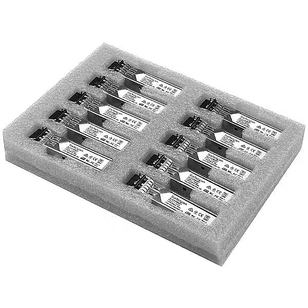 LongDesc - 1000 Mbps (1 Gbps) | Multi Mode Fiber | LC | 550 m (1804 ft) | Lifetime WarrantyThe GLCSXMM10PST is a ten-pack of our Cisco GLC-SX-MM compatible fiber transceiver module that has been designed, programmed and tested to work with Cisco® brand switches and routers. It delivers dependable 1 GbE connectivity over fiber cable, for 1000BASE-SX compliant networks, with a maximum distance of up to 550 m (1804 ft).Technical Specifications:• Wavelength: 850 nm• Maximum Data Transfer Rate: 1.25 Gbps• Type: Multi Mode Fiber• Connection Type: LC Connector• Maximum Transfer Distance: 550 m (1804 ft)• MTBF: 3,381,761 hours• Power Consumption: Less than 1 Watt• Digital Diagnostics Monitoring (DDM): NoThis SFP fiber module is hot-swappable, making upgrades and replacements seamless by minimizing network disruptions.StarTech.com SFPsAll StarTech.com SFP & SFP+ transceiver modules are backed by a lifetime warranty and free lifetime multilingual technical support. StarTech.com offers a wide variety of SFP modules and direct-attach SFP cables, providing the convenience and reliability you need to ensure dependable network performance.The StarTech.com Advantage