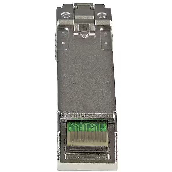 LongSummaryDescription - StarTech.com 10 Gigabit Fiber SFP+ Transceiver Module - HP 455883-B21 Compatible - MM LC with DDM - 300 m~HPE 455883-B21 Compatible SFP+ Module - 10GBASE-SR - 10GbE Multi Mode Fiber Optic Transceiver - 10GE Gigabit Ethernet SFP+ - LC 300m - 850nm - DDM HPE 6120XG, 6120G, Flex Fabric. SFP transceiver type: Fiber optic, Maximum data transfer rate: 11100 Mbit/s, Interface type: SFP+. Product colour: Silver, Housing material: Aluminium, Mean time between failures (MTBF): 3068049 h. Power consumption (typical): 1 W. Compliance certificates: RoHS, Certification: CE, FCC, UL, TAA, UR. Width: 13.3 mm, Depth: 57 mm, Height: 8.9 mm