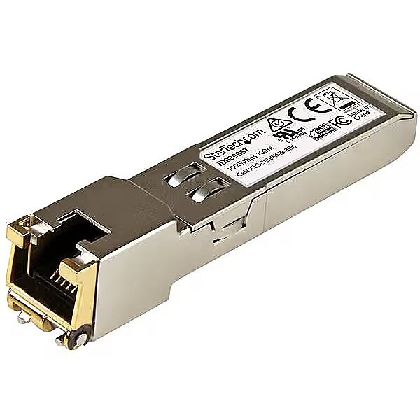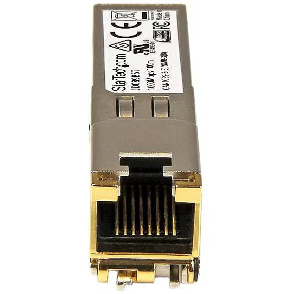 LongDesc - 10/100/1000 Mbps | Copper | RJ45 | 100 m (328 ft) | Lifetime WarrantyThe JD089BST is an HPE JD089B compatible copper transceiver module that has been designed, programmed and tested to work with HPE® brand switches and routers. It delivers dependable 1 GbE connectivity over fiber cable, for 1000BASE-T compliant networks, with a maximum distance of up to 100 m (328 ft).Technical Specifications:• Maximum Data Transfer Rate: 1000 Mbps• Type: Copper• Connection Type: RJ45 Connector• Maximum Transfer Distance: 100 m (328 ft)• MTBF: 4,655,371 hours• Power Consumption: Less than 1.3 Watts• Digital Diagnostics Monitoring (DDM): NoThis SFP copper module is hot-swappable, making upgrades and replacements seamless by minimizing network disruptions.StarTech.com SFPsAll StarTech.com SFP & SFP+ transceiver modules are backed by a lifetime warranty and free lifetime multilingual technical support. StarTech.com offers a wide variety of SFP modules and direct-attach SFP cables, providing the convenience and reliability you need to ensure dependable network performance.The StarTech.com Advantage