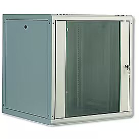 Technical_details - The DIGITUS SOHO Wall Cabinets are made of a robust steel construction with a minimum of seams. Ideal for all current IT- and Telecommunication applications. Standard Type: - 1,1mm – 1,5mm strong sheet steel with high load capacity, grey (RAL 7035) - Side sections detachable and lockable - Ventilationslots for passive ventilation and exhaustion - Protection rating IP 40 - Safety-Glass door with steel frame and lockable - 2 x 19” profile rails - Cable entry on top and bottom - Incl. 8 pieces mounting set - Grounded - Extensive accessories available Product dimensions 600 mm x 490 mm x 450 mm Holding Capacity 9 Height Units Installation Width 483 mm Maximum Weight 60 wt.