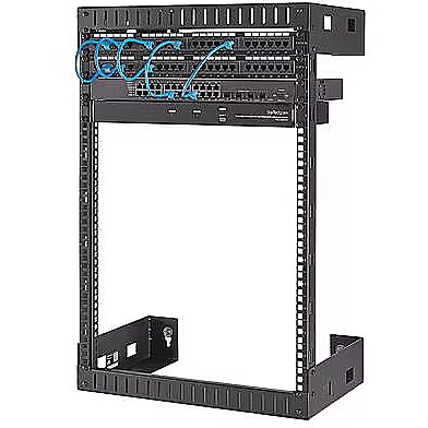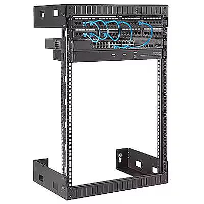 LongDesc - Mount your server or networking equipment using this 15U wall mount rackThis open-frame wall-mount server rack provides 15U of storage, allowing you to save space and stay organized. The equipment rack can hold up to 198 lb. (90 kg).Easy, hassle-free installationThe network rack is 12 in. (30.4 cm) deep, so it's perfect for smaller spaces. It's easy to assemble and features mounting holes that are spaced 16 in. apart, making it suitable for mounting on almost any wall, based on common wall-frame stud spacing. The wall-mount rack comes in a flat-pack making it easy to transport and reducing your cost in shipping.Free up spaceYou can mount the open-frame rack where space is limited, such as on a server room wall, office, or above a doorway, to expand your workspace and ensure your equipment is easy to access.Keep your equipment cool and accessibleBy having an open frame the server rack provides passive cooling to equipment. Additionally, the open frame provides easy access and configurability to your equipment, allowing you to maximize productivity.The RK15WALLO is backed by a StarTech.com 5-year warranty and free lifetime technical support.The StarTech.com Advantage