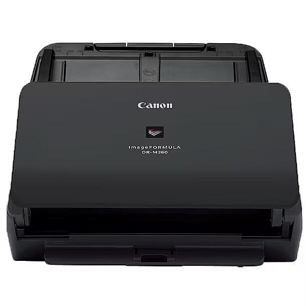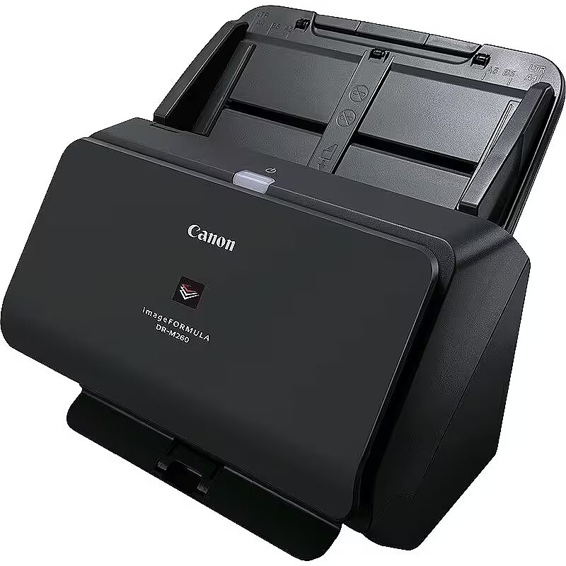 LongSummaryDescription - Canon imageFORMULA DR-M260. Maximum scan size: 216 x 5588 mm, Optical scanning resolution: 600 x 600 DPI, Output colour depth: 24 bit. Scanner type: Sheet-fed scanner, Product colour: Black, Display: LCD. Sensor type: CMOS CIS, Daily duty cycle (max): 7500 pages, Light source: RGB LED. Standard input capacity: 80 sheets. Maximum ISO A-series paper size: A4, Scanning media types supported: Business Card, Plastic Card, Post Card(JPN), Media thickness (min): 0.04 mm