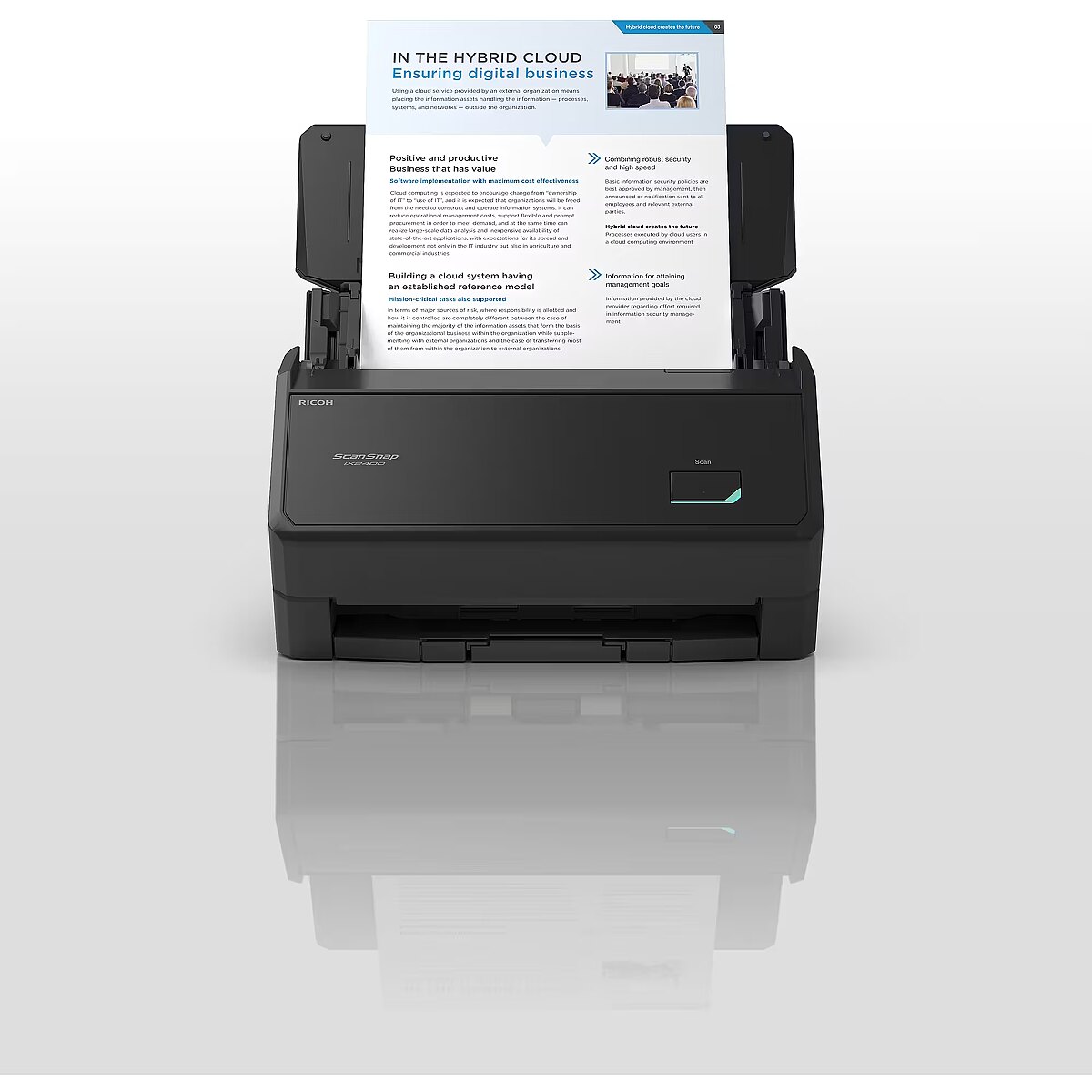 LongSummaryDescription - Ricoh ScanSnap iX2400. Maximum scan size: 216 x 316 mm, Optical scanning resolution: 600 x 600 DPI, ADF scan speed (b/w, A4): 45 ppm. Scanner type: ADF scanner, Product colour: Black. Sensor type: Dual CIS. Auto document feeder (ADF) input capacity: 100 sheets. Maximum ISO A-series paper size: A4, Scanning media types supported: Business Card, Post Card(JPN), ISO A-series sizes (A0...A9): A4, A5, A6