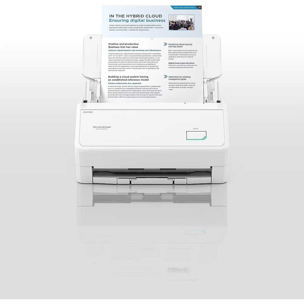 LongSummaryDescription - Ricoh ScanSnap iX2400. Maximum scan size: 216 x 316 mm, Optical scanning resolution: 600 x 600 DPI, ADF scan speed (b/w, A4): 45 ppm. Scanner type: ADF scanner, Product colour: White. Sensor type: Dual CIS. Auto document feeder (ADF) input capacity: 100 sheets. Maximum ISO A-series paper size: A4, Scanning media types supported: Business Card, Post Card(JPN), ISO A-series sizes (A0...A9): A4, A5, A6