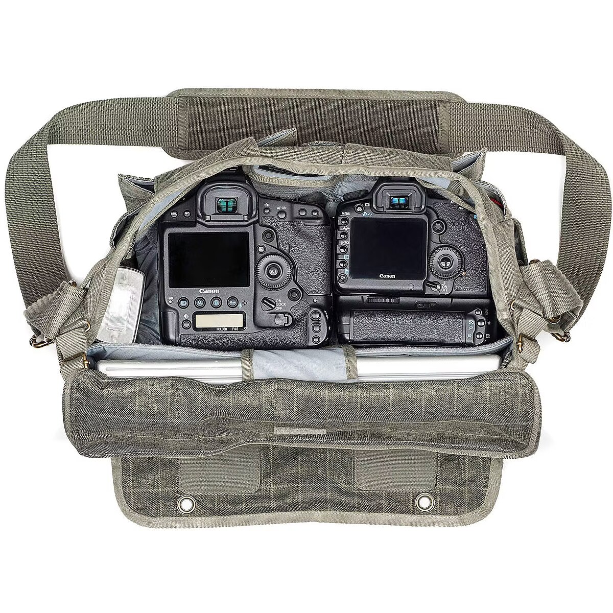 description_en - The Retrospective 30 V2.0 shoulder bag retains that classic look but includes many innovative new features. Keeping the soft, form-fitting design, they are lighter than the original. For greater security, we added a zippered opening under the main flap that tucks away when not in use. Soft and form-fitting with minimalist outer appearance Zippered opening to main compartment tucks-away when not in use Dedicated pocket fits a 9" tablet Luggage handle pass-through Collapsible water bottle pocket Hook-and-loop “Sound Silencers” offer discretion when needed Webbing rail to accommodate modular pouches or carabineer Additional dividers to sub-divide compartments for smaller lenses Organizer pocket Wide storage pocket on back Removable carrying handle Zippered pocket for valuables and small items Adjustable shoulder strap with cushioned non-slip pad Seam-sealed rain cover included What fits in this bag? 2 gripped DSLRs 70-200mm f/2.8 unattached 24–70mm f/2.8 attached 16–35mm f/2.8 attached Up to a 15” laptop Example: 2 Nikon D5 bodies with 14–24mm f/2.8 and 24–70mm f/2.8 attached, plus a 70–200mm f/2.8 unattached, iPad or 15” laptop