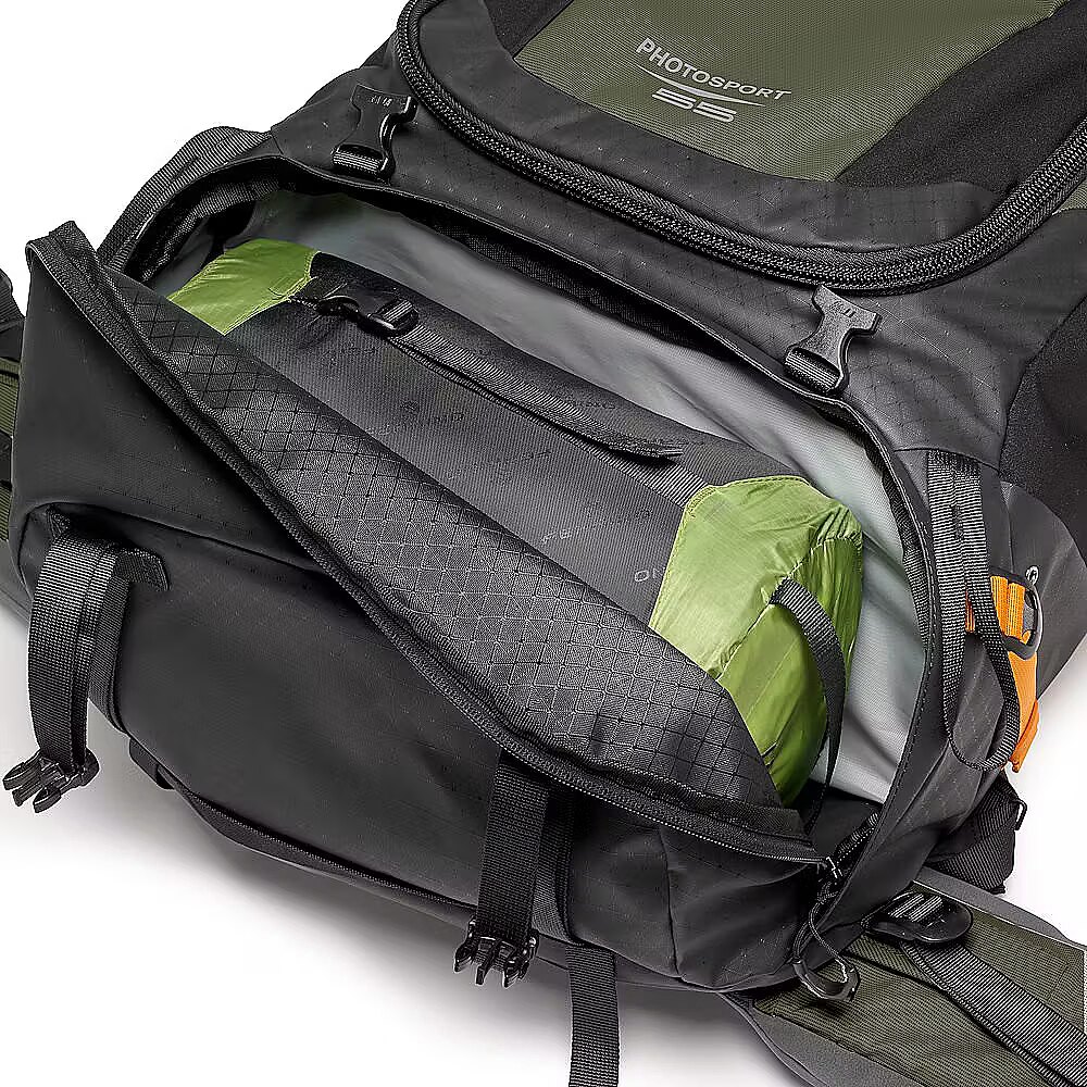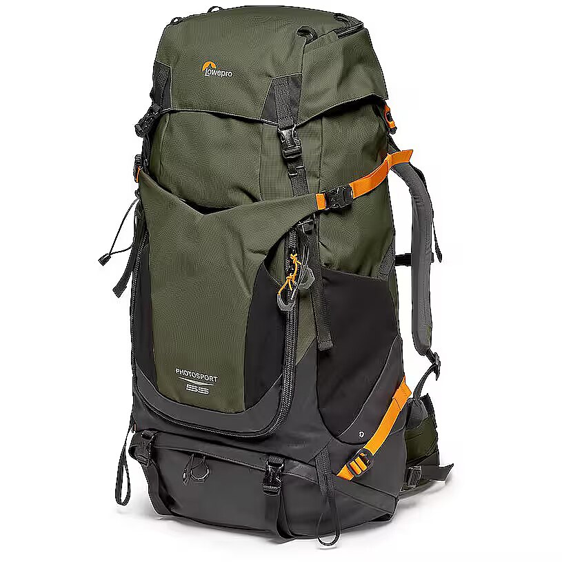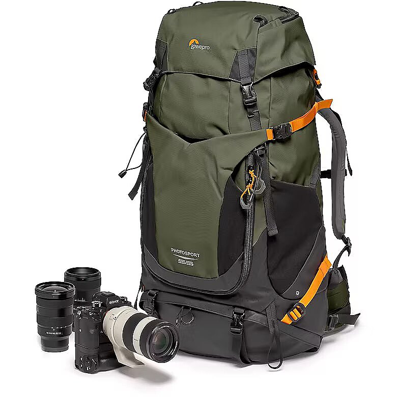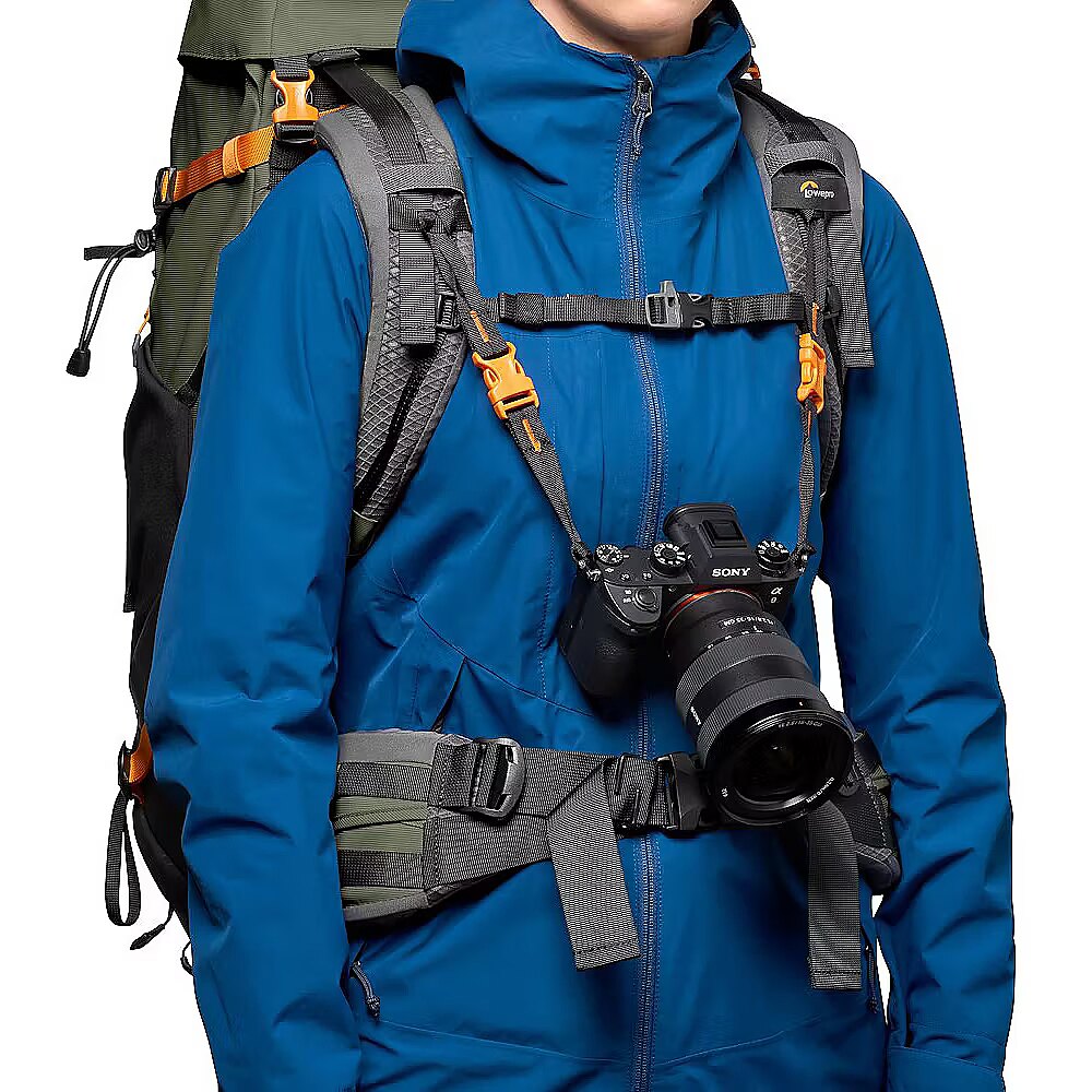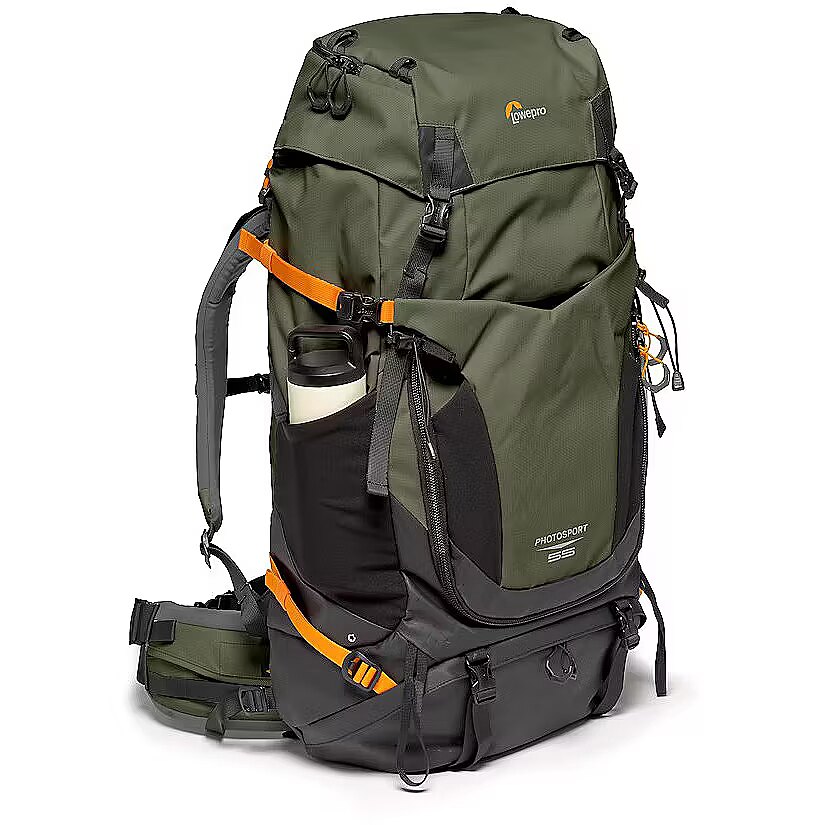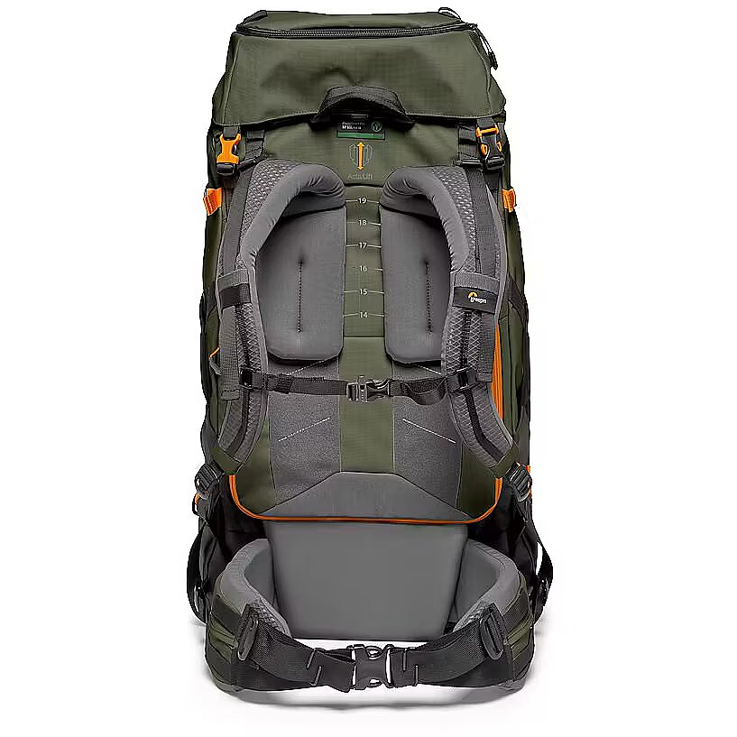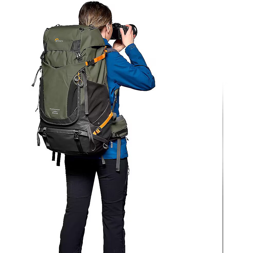 description_en - Essential photographers backcountry camera backpack for multi-day hiking Fits CSC/DSLR with grip, 70-200/2.8 attached & 2 extra lenses Extra lightweight & made with 86% recycled fabric Easy front and back access to removable GearUp camera insert Features Small/Medium shoulder straps and ActivLift™ harness Keep hydrated with a 3-litre dedicated hydration pocket The new Lowepro PhotoSport PRO Backpack is built for professional photographers who need a lightweight, comfortable bag that perfectly suits their gear and use during a multi-day photography mission in the backcountry. Our backcountry camera backpack has been designed to protect photo gear with the integrated and removable GearUp PRO XL camera insert, plus the dedicated accessory strap system allowing multiple carrying configurations. Provides enough storage space for multi-day hiking essentials, such as sleeping bag, tent, camp meal, jacket, trekking poles, hydration reservoir and water bottle, etc. Hike in comfort for the long haul with the ActivLift™ harness system with torso length adjustment – built to provide a comfortable fit and weight distribution for optimal outdoor exploration. Built rugged and made of 86% recycled fabric and it includes All Weather AW Cover™ to protect gear from rain, snow and dust. Fits Pro DSLR or Pro Mirrorless body with 70-200mm f/2.8 lens attached 1-2 extra lenses 3-litre hydration reservoir (not included) Large tripod