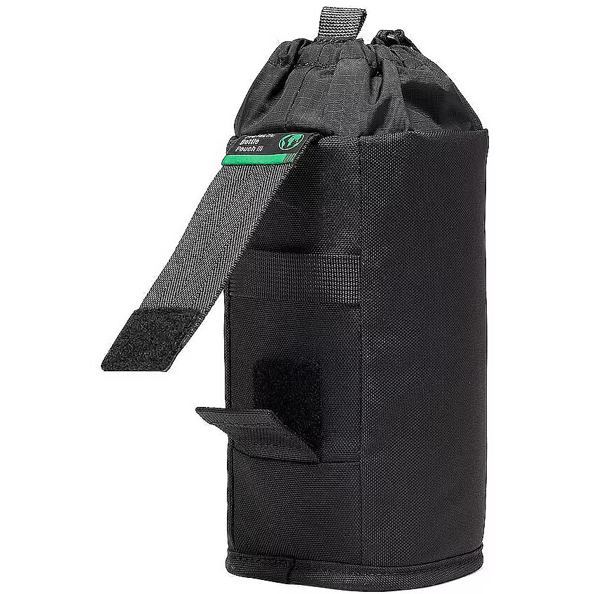 ProTactic Bottle Pouch III isoleeritud kott mahutab kuni 1-liitrise pudeli või objektiivi ning avaneb ja sulgub tõmbega. Kott kinnitub mis tahes SlipLock™-iga ühilduva koti või vöö külge, sealhulgas ProTactic III seljakottide, TLZ ja Utility Belt rihma külge. Eriline horisontaalne vöö tagaküljel tagab stabiilsuse, kui see on kinnitatud tavalise püksirihma külge. Jätkusuutlikkus ja pikaealisus