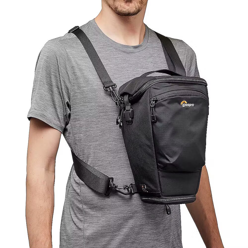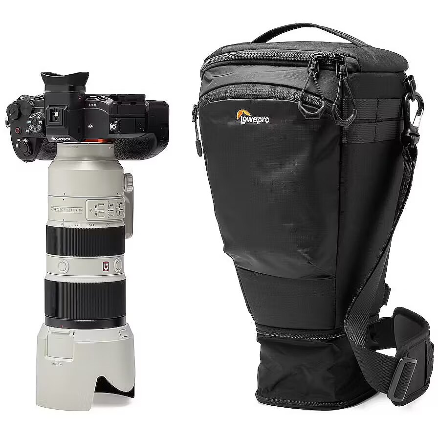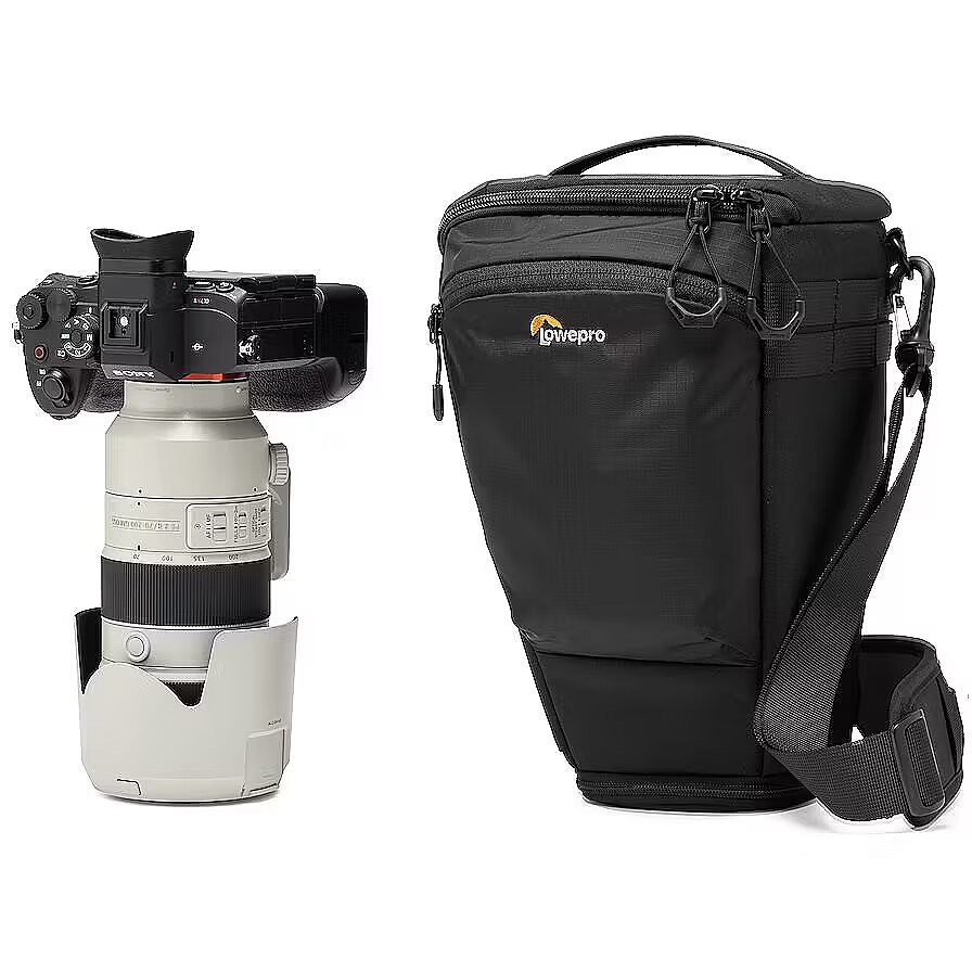 description_en - TopLoader fits full frame body w/grip & lens up to 70-200mm F2.8, with expansion for lens hood. Compatible with SlipLock accessories like lens cases Shoulder or chest carry with primary & secondary shoulder straps Belt tunnel for standard 38mm belt or any ProTactic III belt Stowable quick access buckle closure for access on the move Includes All Weather Cover™ 88% recycled fabric* - lab & field tested for durability Adapt to Every Moment