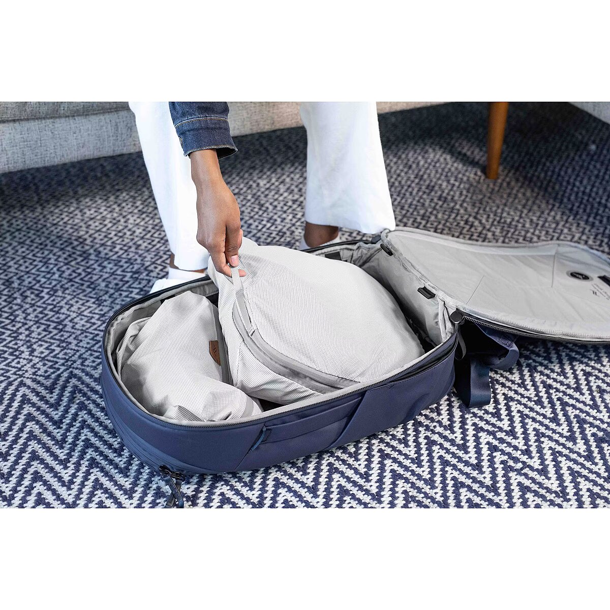 The 30L pack is best suited for: 1-bag-travel for trips 3 days and under. Day bag use: perfect for exploring, commuting, and working, in a new place, or in your hometown. Your carry-on personal item: fits more easily under airline seats. Travel ready International carry-on approved Theft-deterrent zipper pulls Protected luggage tag holder Luggage pass-through for roller bag carry Padded shoulder straps stow under magnetic flaps for worry-free bag-checking Impressive capacity + expansion Huge rear access via burly #10 UltraZip Expansion zips for fitting more or compressing your load External carry straps stow beneath a magnetic flap Space for everything Hugely expandable side pockets for water bottles, tripods, more Large soft-lined zippered top pocket with pockets for keys, glasses, passport, etc. Internal zippered mesh pockets Padded, dedicated laptop and tablet sleeves All-day comfort Axial strap attachments provide all-day comfort for all body types Stowable sternum strap 360-degree grab handles Rugged protection Weatherproof 100% recycled 400D nylon canvas shell Rugged 900D waterproof bottom liner Ultralight padded foam provides security and structure around entire bag High-visibility grey interior Sustainably built Fair Trade Certified 100% carbon neutral Lifetime guarantee PD Travel ecosystem Designed to fit Peak Design Packing Cubes (fits 3 units) Note: only fits Peak Design Camera Cubes when fully expanded. 45L Travel Backpack recommended for carrying lots of camera gear. Differences VS. 45L Simplified access: main access via single rear zip (45L also has side and front access) Larger top pocket: subdivided with internal stretch and zip pockets (45L has smaller, undivided pocket) Single volume: 45L has a removable internal divider not found on the 30L Hip belt not included: 45L has a built-in hip belt, 30L has optional hip belt accessory Less photo-oriented: the 30L only fits PD Camera Cubes when fully expanded. For frequent/heavy camera carry, 45L is recommended