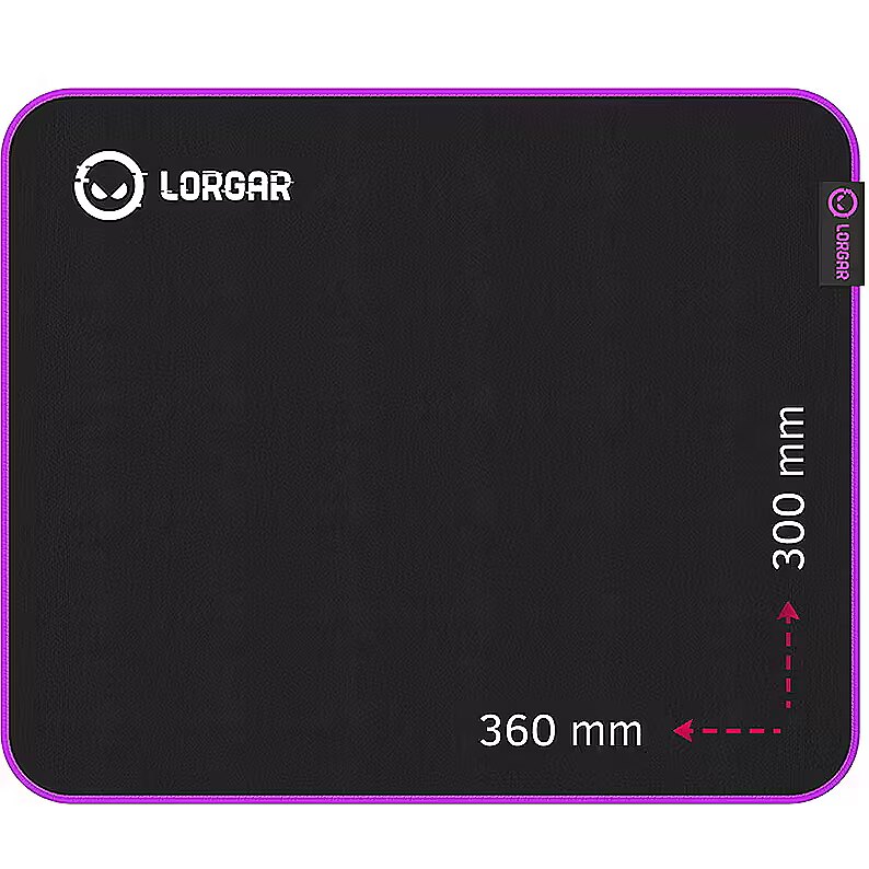 ProductDescription - Lorgar Main 313, Gaming mouse pad, High-speed surface, Purple anti-slip rubber base, size: 360mm x 300mm x 3mm, weight 0.195kg