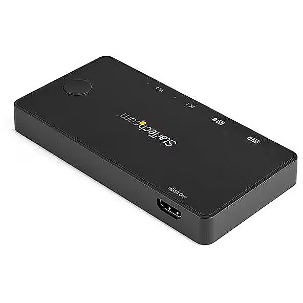 LongDesc - USB-C™ with DP Alt Mode | HDMI® 2.0 | 4K 60Hz | Host Cables IncludedThis 2-port USB-C™ KVM enables you to easily switch between two USB Type-C or Thunderbolt™ 3 desktop or laptop computers, using a single keyboard, HDMI® monitor and mouse. Easy to Setup and Use Utilizing USB-C with DP alt-mode, this compact KVM switch only requires a single cable be connected to each of your computers, ensuring a small footprint with limited cabling requirements. All required cables for connecting your computers are included, to ensure a hassle-free setup right out of the box. For easy operation, the KVM features a single button that toggles between connected computers. Supports 4K 60Hz Resolutions The USB-C KVM switch supports UHD resolutions up to 4K (3840x2160) at 60Hz and can drive one large HDMI 2.0 display with ease, maximizing viewing space. Compact and Portable Along with the USB-C design that ensures cabling requires are minimum the KVM is bus powered further reducing clutter by avoiding the need for a bulky power adapter. The lightweight small form factor makes this mini KVM switch easy to deploy and is ideal for mobile/hot desk workforces. Guaranteed Compatibility The KVM is OS independent supporting all operating systems including Windows, Linux, macOS, iPadOS (Apple iPad Pro) and Android. StarTech.com has rigorously tested this product to ensure compatibility with all popular device brands including: Dell, HP, Apple and Lenovo. The SV211HDUC is backed by a StarTech.com 2-year warranty and free lifetime technical support.The StarTech.com Advantage