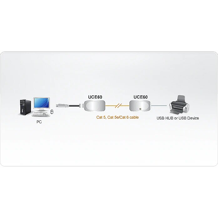 LongDesc - UCE60 lets you locate your USB device or hub up to 60m (198 ft) from you computer, overcoming the typical USB cable limitation. It conditions the USB signals to communicate up to 60m using low-cost Cat 5/Cat 5e/Cat 6 cable.1x Local Unit (1 ft USB Cable attached)1x Remote Unit