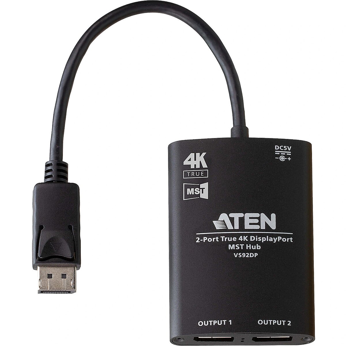LongDesc - Designed with a cost effective, yet advanced DisplayPort MST solution in mind, the ATEN VS92DP 2-Port True 4K DisplayPort MST Hub allows the high-defi nition video to be transmitted to two different locations without losing quality. Productivity is enhanced with its feature that permits up to two displays to be connected to a Windows-based laptop / PC. Meanwhile, users can mirror the same image onto two displays or display independent content to each display for multitasking.1x VS92DP 2-Port True 4K DisplayPort MST Hub 1x USB Type-A to USB Micro-B cable 1x user instructions