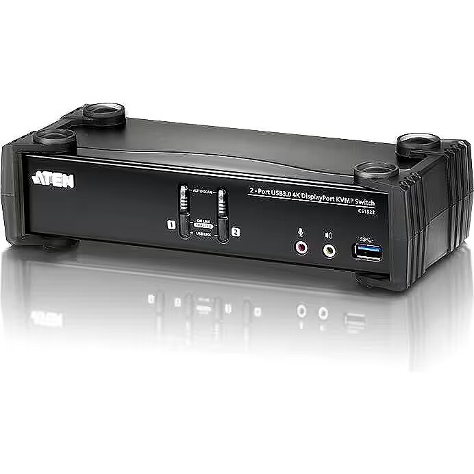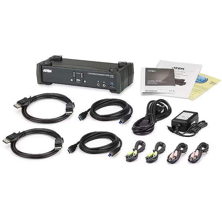 LongDesc - The ATEN CS1922 2-Port USB 3.0 4K DisplayPort KVMP™ Switch provides the latest innovations in desktop KVM switching technology for the increasing demand of higher video quality and transfer speeds on modern computers. The ATEN CS1922 offers an unprecedented performance of delivering 4K resolution, the next generation USB 3.1 Gen 1 hub with SuperSpeed 5 Gbps data transfer rates and enhanced user-friendly operations.1x CS1922 2-Port USB 3.0 4K DisplayPort KVMP™ Switch2x LIN5-20K1-K13G DisplayPort Cables2x LIN6-11C1-E12G USB 3.0 Cables2x LIN5-0205-21CG Audio Cable2x LIN5-0205-21DG Audio Cable1x 0AD8-8005-40MG Power Adapter1x LIN2-418K-E12G Power Cord1x User Instructions