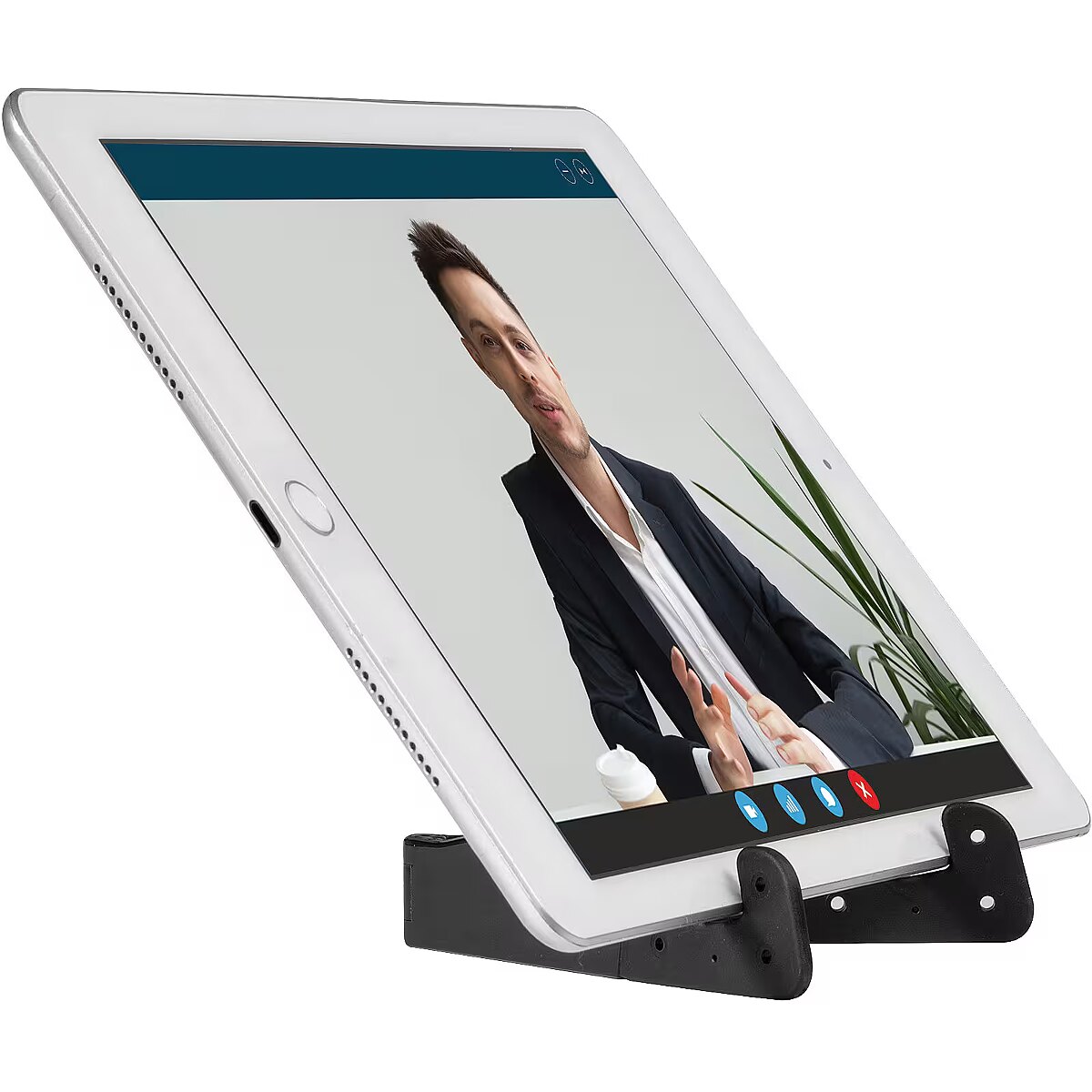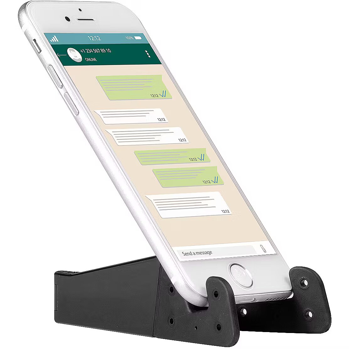 description_en - Practical, foldable stand for smartphone or tablet. The stand can be used both vertically and horizontally. Foldable stand for smartphone and tablet Can be used vertically and horizontally Ideal for conference calls Material: Plastic Small and light, ideal for traveling NB! The stand is available in black, blue and white – the product is shipped randomly according to stock.
