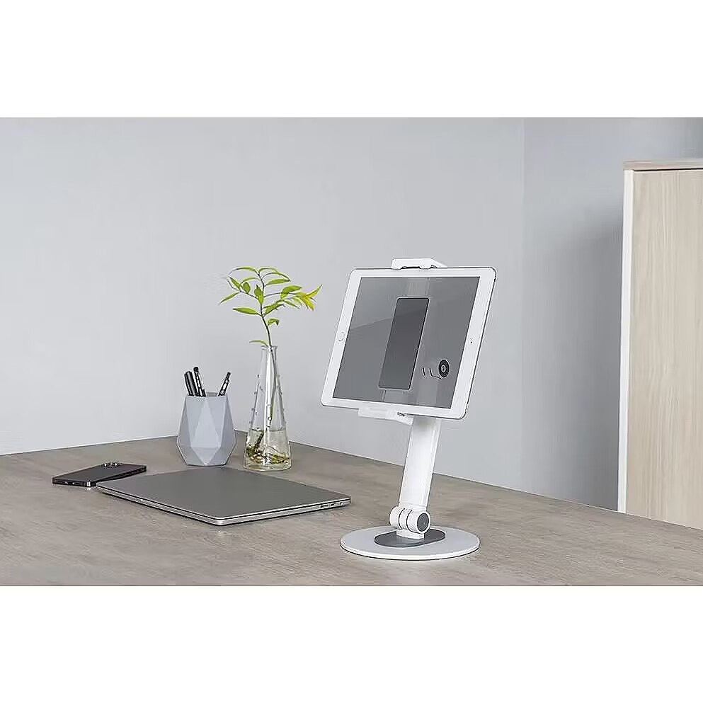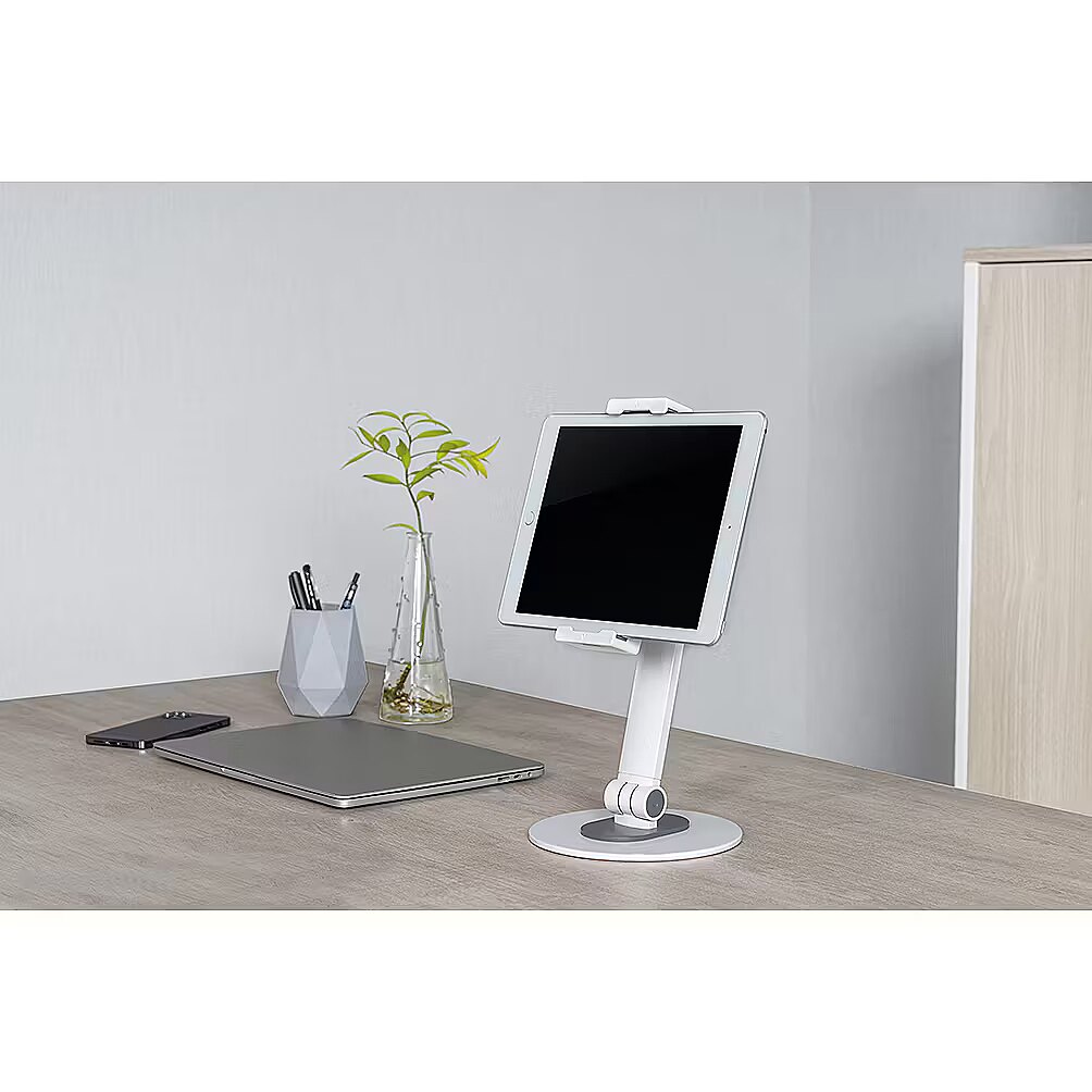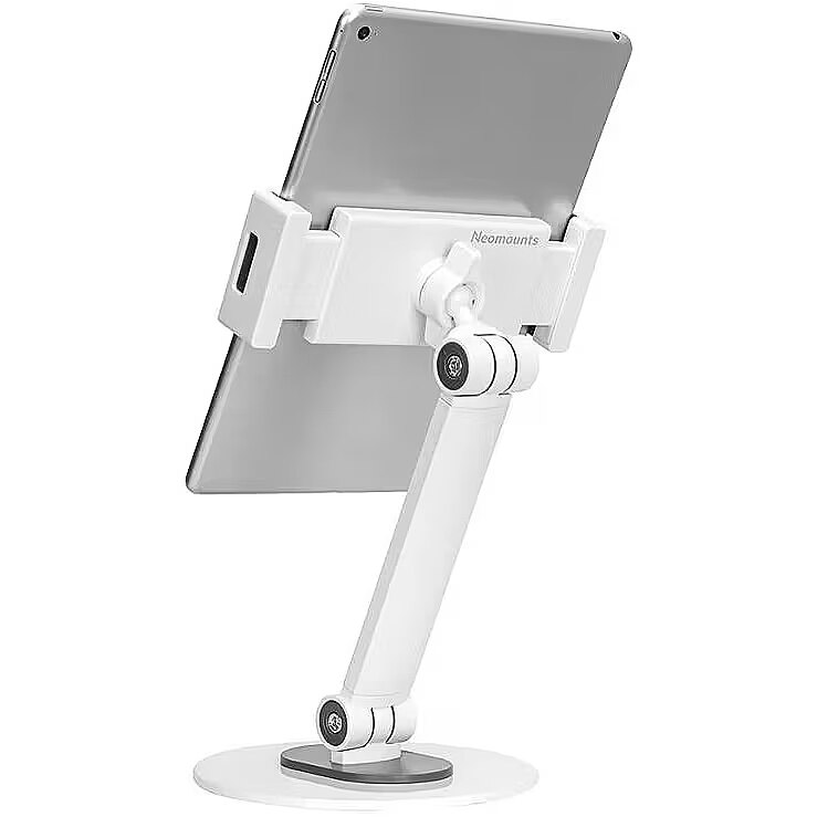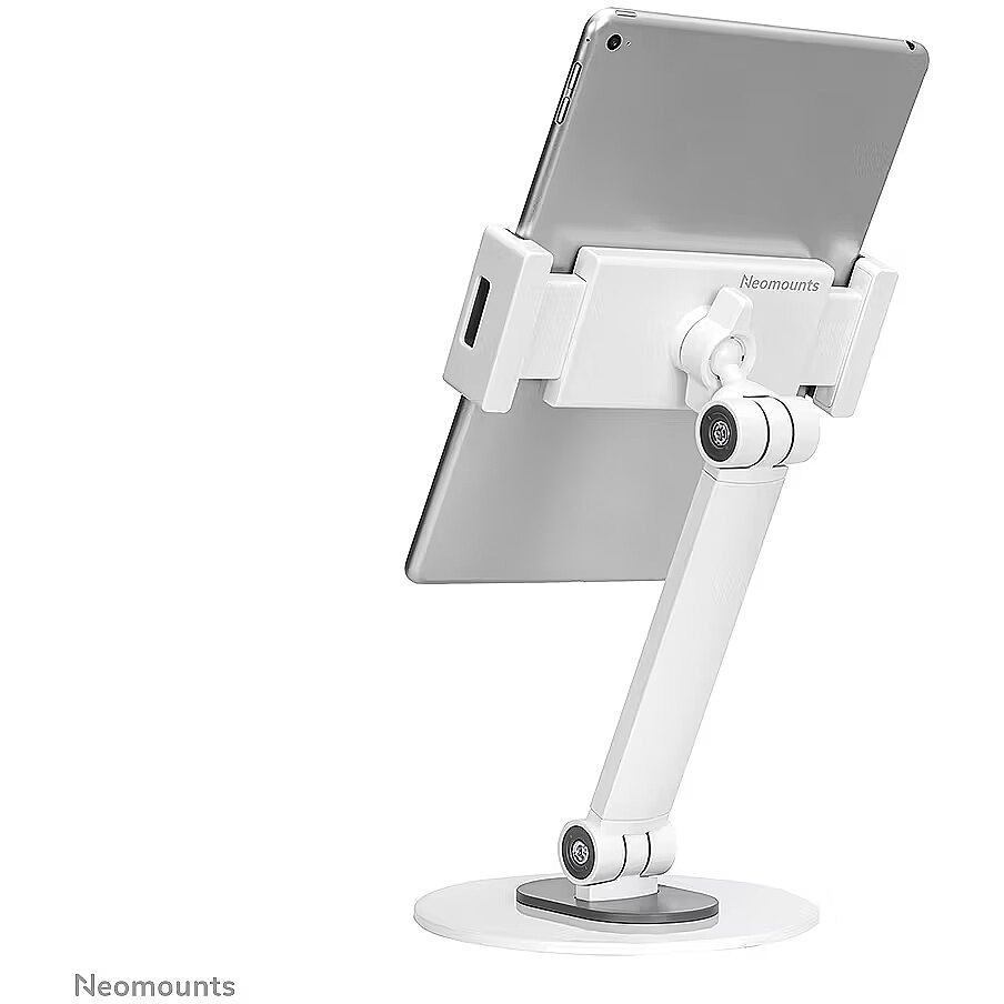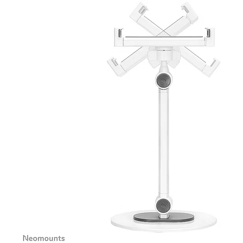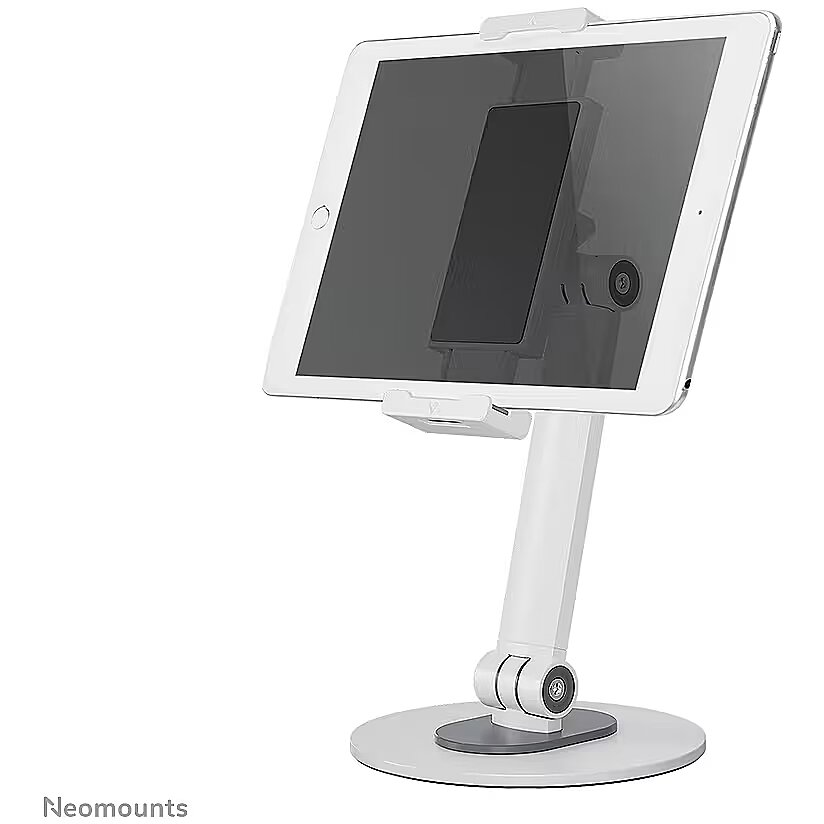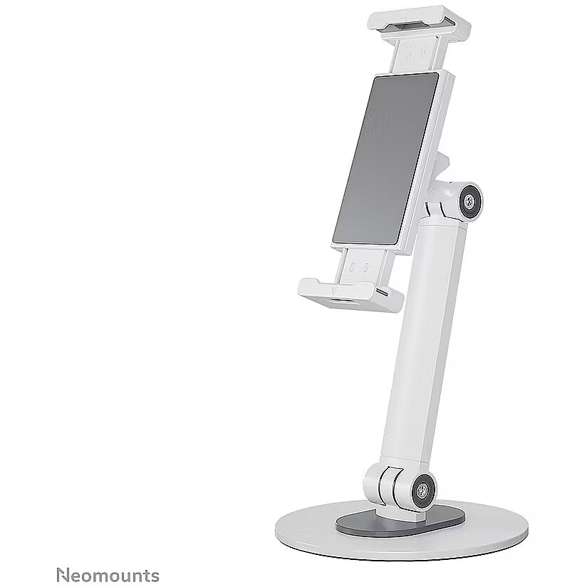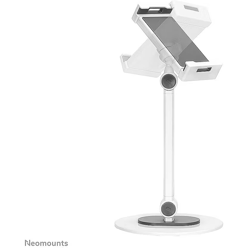 LongDesc - The Neomounts DS15-540WH1 is an universal tablet stand for tablets from 4,7" up to 12,9" with a weight capacity of 1 kg. The tablet stand is ideal for hands-free video calling, watching a movie or playing a game.The integrated ball joint allows the stand to rotate 360° so you can switch between portrait and landscape position. Additionally, the clever tilt (270°) and swivel (104°) options allow the stand to further change to the ideal viewing angle. Soft rubber pads protect your device from any scratches and the solid base with anti-skid silicon pads ensure solid positioning of your device.