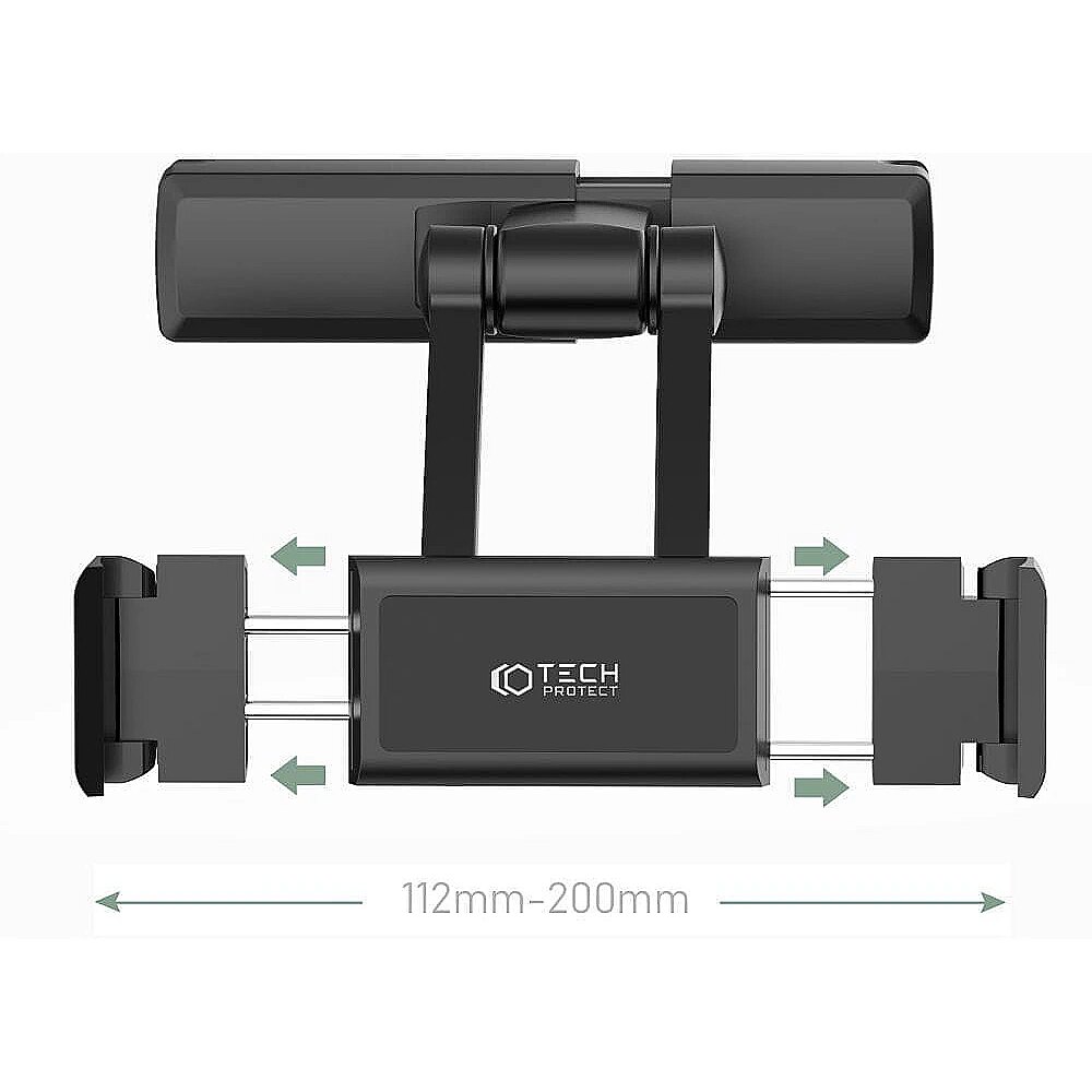 description_en - The universal Tech-Protect V2 car holder, which attaches to the seat headrest, is designed for devices such as phones and tablets. Comfortable and easy to use, it is ideal for long journeys as it provides entertainment for both you and the other passengers. Made from durable and lightweight materials such as aluminum alloy, polycarbonate and silicone. The adjustable handle bar stabilizes the device and prevents it from moving even in difficult conditions, while the foldable arms minimize the size of the product when not in use. The 360° swivel head allows the device to be positioned vertically and horizontally to meet the individual needs of even the smallest users. The product has wide compatibility – it is suitable for headrests with a diameter of 130–165 mm, while the jaws can grip a device with a width of 112–200 mm.