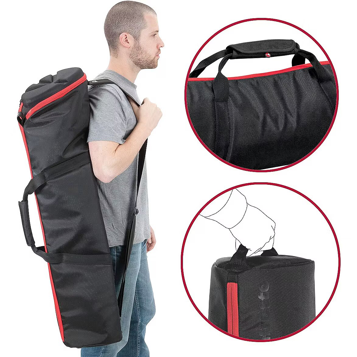 description_et - Kott suudab kaitsta koos peaga statiivi, mille pikkus on kuni 85 cm transpordiasendis. Selle asümmeetriline kuju võimaldab mahutada statiivi seejuures statiivi pead eemaldamata. Kott on varustatud tõmblukuga koti täies ulatuses ning osaliselt ka selle otsas. Lisaks on kotil sisemine tasku, kuhu mahuvad näiteks videopea käepidemed. Tagamaks kandmismugavuse on sellel kaasas mugav õlarihm. Välised mõõdud: 900 × ø200 mm Sisemised mõõdud: 850 × ø180 mm Kaal: 970 g