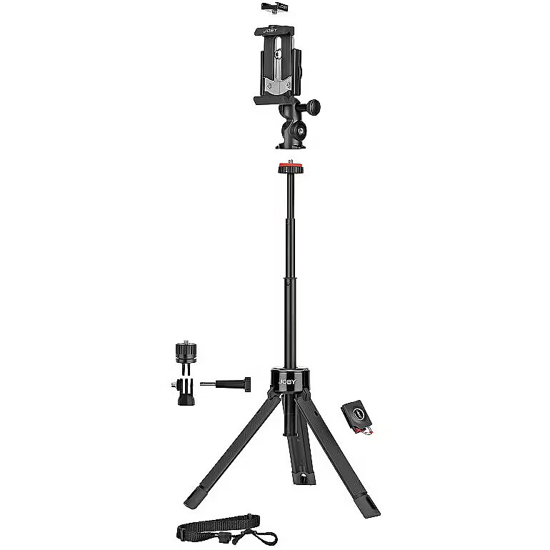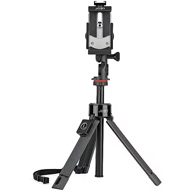 description_en - Elevate your creativity! Meet the FIRST telescoping tripod from the makers of GorillaPod. The latest addition to JOBY's line-up of pro-content creation tools, this handheld tripod/vlogging stick works in 4 modes for maximum versatility: Hand Grip, Extended Grip, Tabletop Tripod and Elevated Tripod. Secure any smartphone in the pro-grade, locking GripTight™ mount and 4 modes of operation. Easily adjust tilt and landscape-to-portrait mode for live streaming, vlogging, Snapchat and Instagram stories Mount mirrorless, point & shoot, 360, action cam or video light weighing up to 1 kg (2.2 lbs) via ¼”-20 connection Built with durable fiberglass reinforced composite, tripod telescopes from 34-79 cm (13.5 - 31 inches) for extended reach Adjustable legs click-set into 3 positions for stability on uneven surfaces - flatten to a max of 36 cm (14 inches) diameter for added stability in wind Includes Cold Shoe PRO, Pin Joint Mount and long thumbscrew for versatile setup options Capture shots from a distance with Bluetooth® Impulse remote shutter