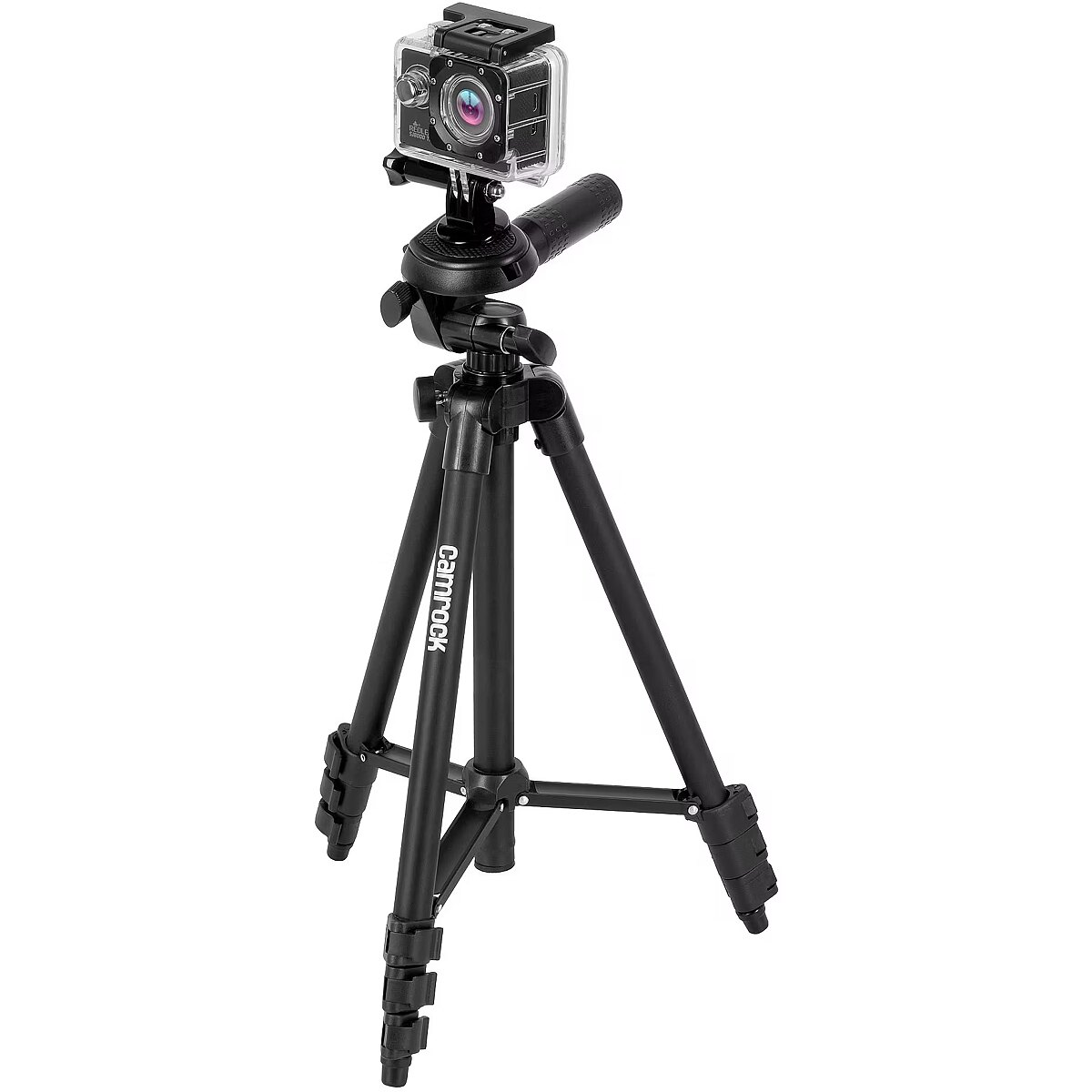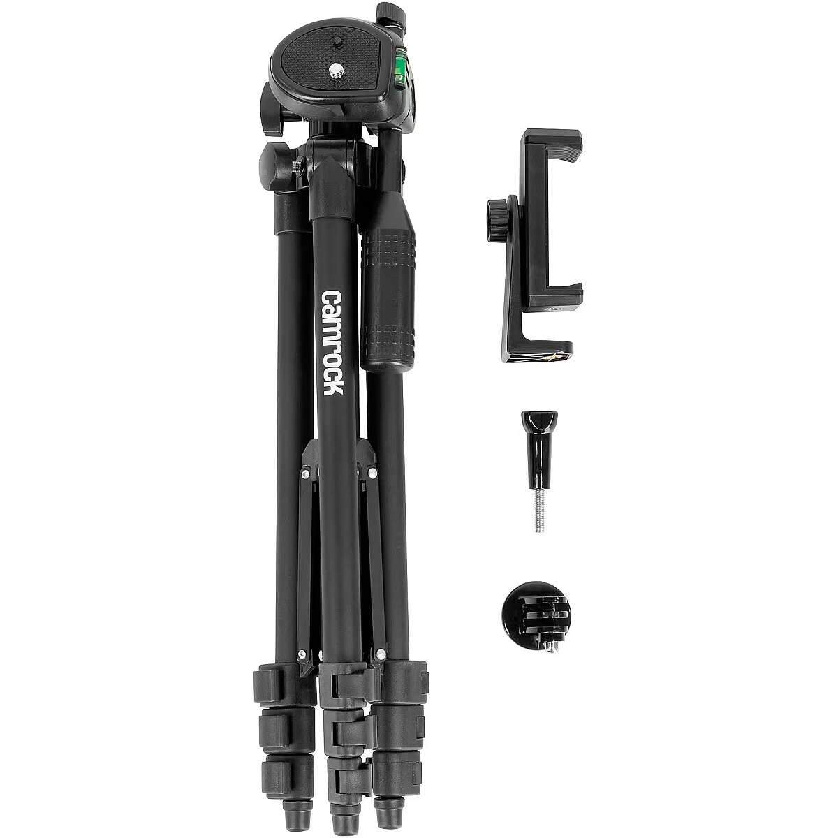 description_en - Camrock TA10 Black – Mobile Kit is the perfect choice for mobile photography enthusiasts. The set consists of a tripod, a mobile phone holder and a mount compatible with sports webcams. This compact tripod is also suitable for users of smaller digital cameras and mirrorless cameras. The tripod legs are equipped with a convenient clamping system and non-slip pads for stability on a variety of surfaces. An unquestionable advantage of this set is its small size and low weight. After folding, TA10 Black measures only 36 cm and fits easily into almost any travel bag. You can take this set with you literally anywhere! An additional convenience is a 3D head equipped with a quick-release coupling. It allows you to attach the camera in no time and set the precise frame.