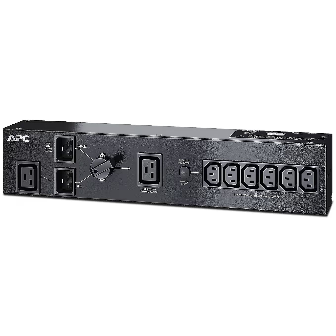 LongDesc - APC Maintenance Bypass Panels , Input: 230V , Input Connections: IEC-320 C20 , Cord Length: 8.2 feet ( 2.5 meters ) , Output: 230V , Output Connections: IEC 320 C13,IEC 320 C19,IEC JumpersQuick Transfer RateTransfer rate is within the industry standard and within the time power supplies will typically drop loads. The transfer of one power source to another is seamless to the connected equipment avoiding disruption of equipment performance.Wrap Around System Bypass(3) Breaker maintenance bypass panel to isolate the UPS from the critical load